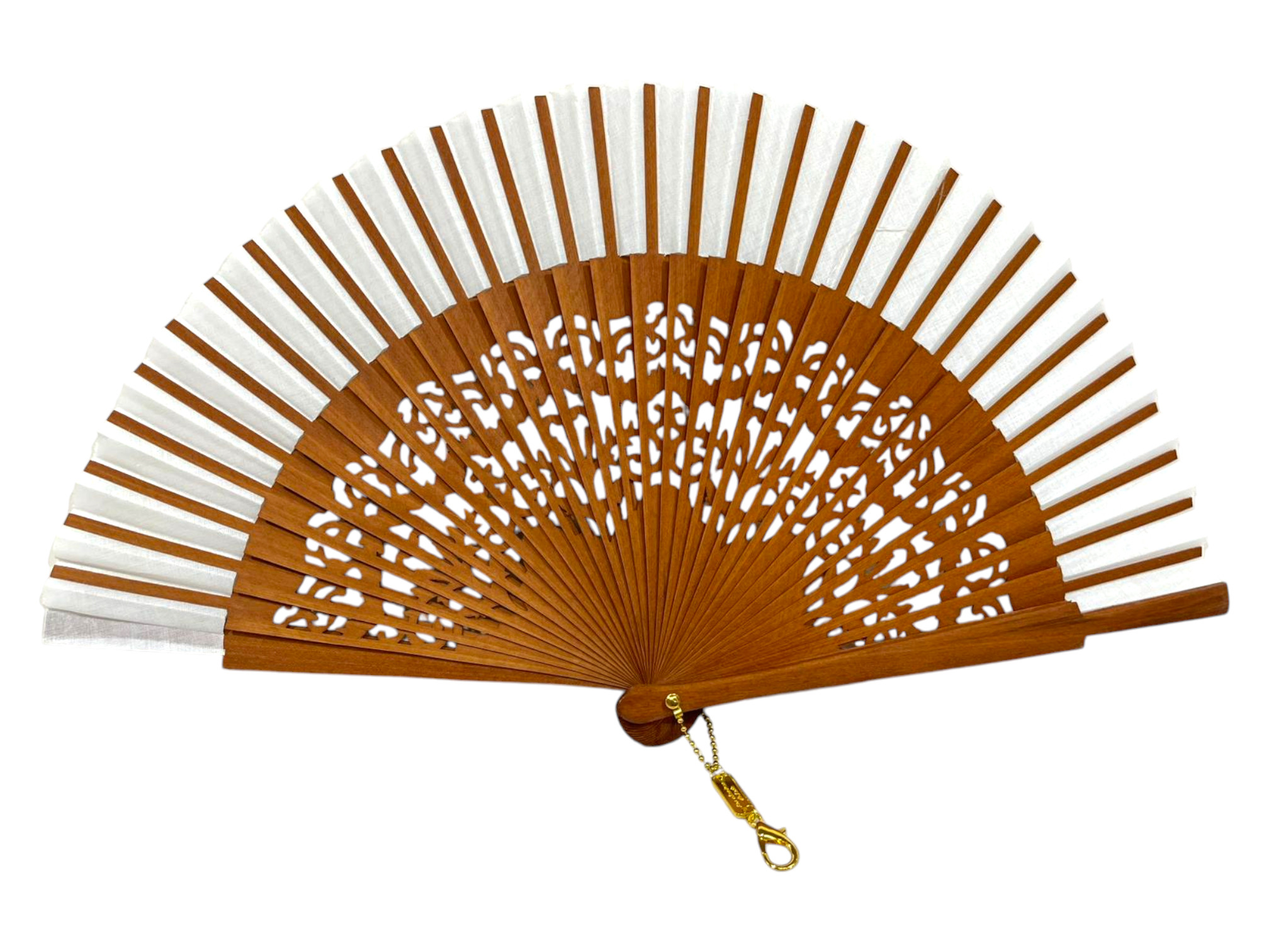 Abanico Blanco de Flamenca Elegante con Madera Calada. Accesorio para Eventos. Ref. 5226