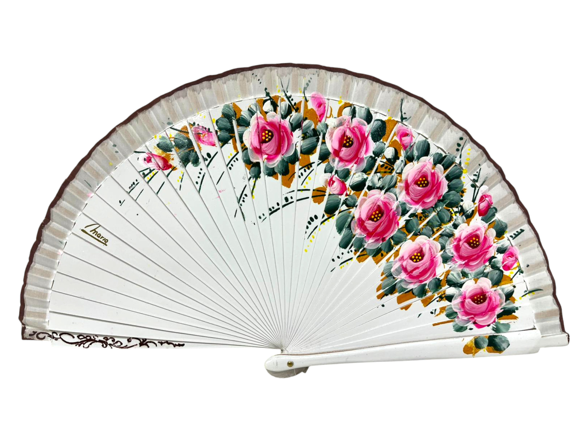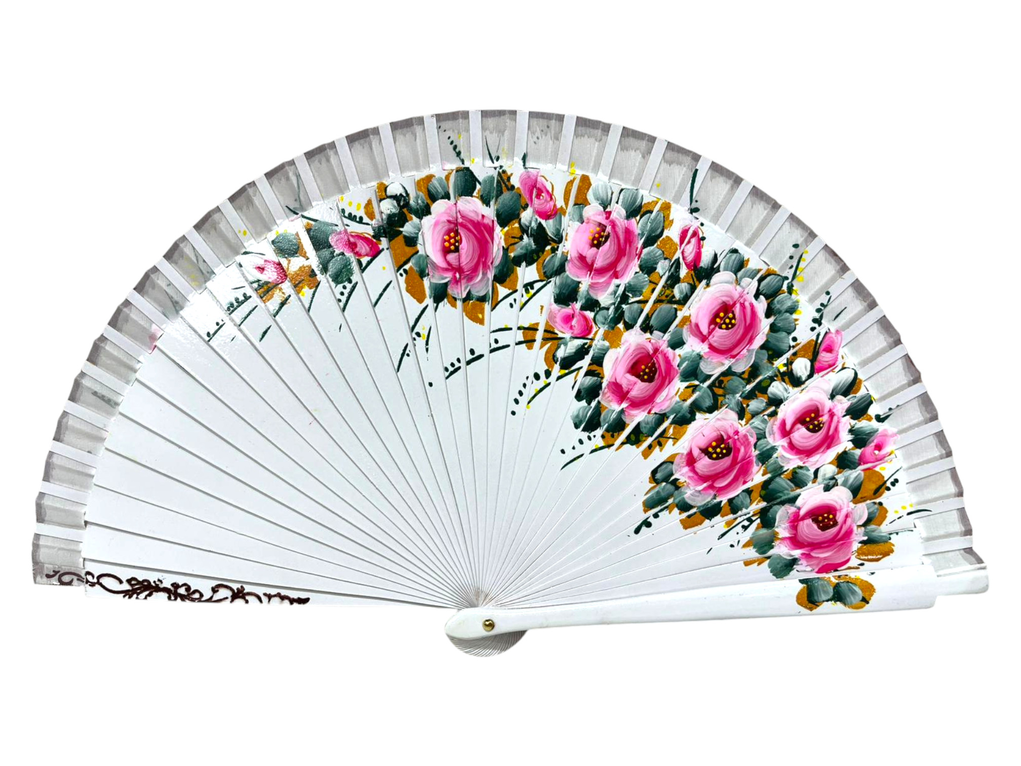 Abanico Blanco Decorado con Flores y Pintado por Ambas Caras