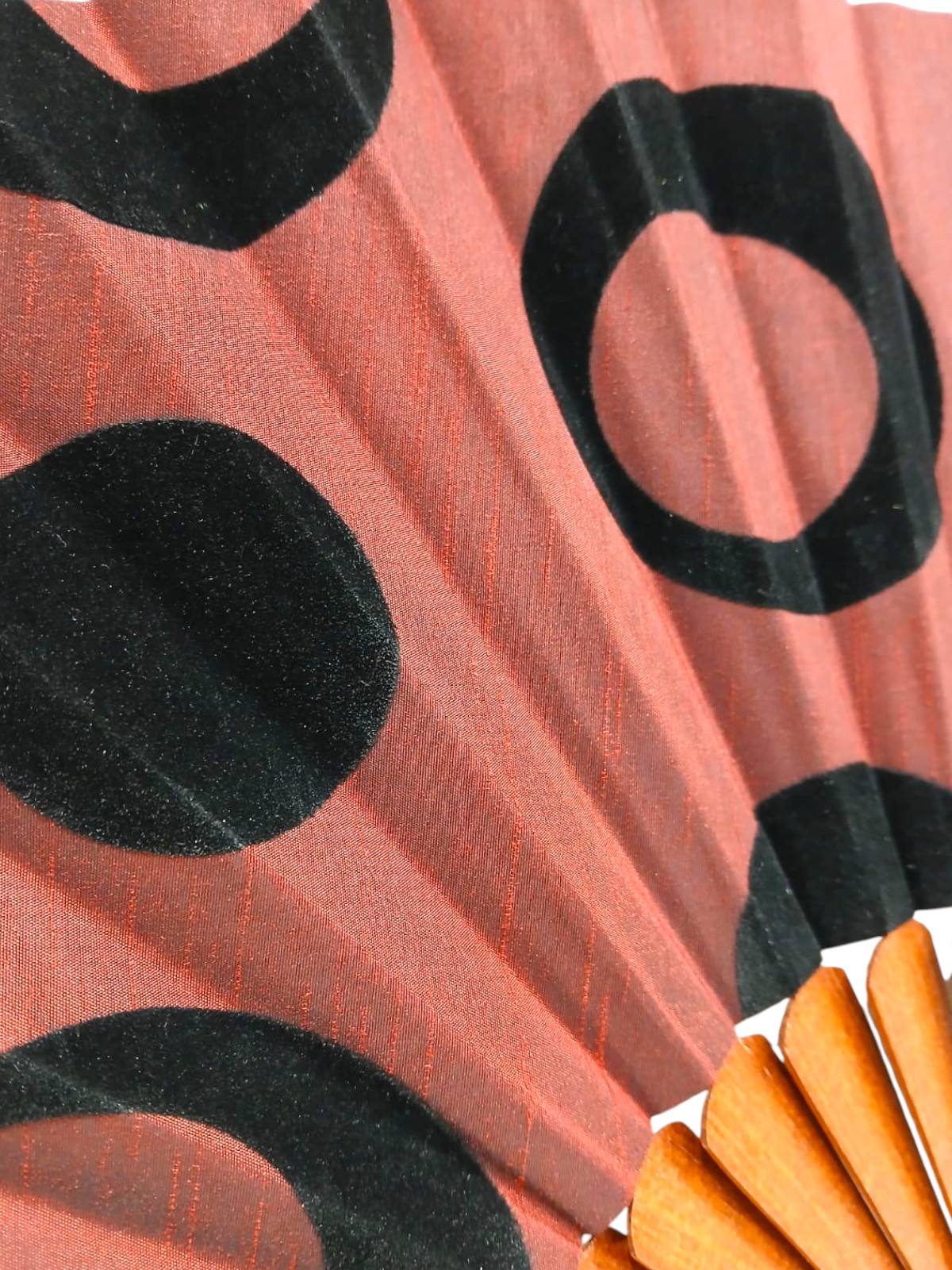 Abanico de lunares en terciopelo y madera de bokapi – Hecho a mano en España