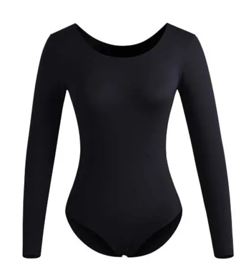 Long-sleeved black leotard.