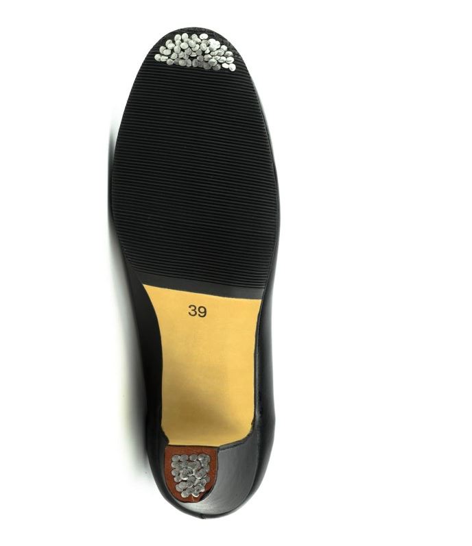 Leather shoes for initiation to Spanish Classic Flamenco Dance with rubber. Made in Boxcalf leather with genuine leather, rubber sole and synthetic half-sole and a few nails. Made in Spain.