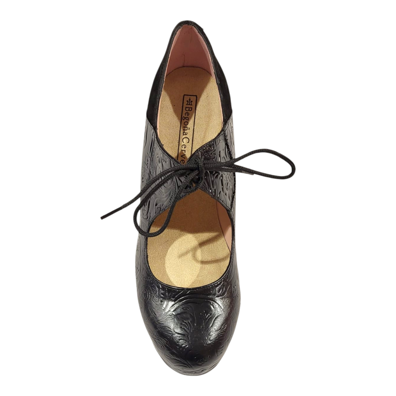 Wonderful pair of shoes for the flamenco dance. The model Arty is fastened on the upper part of the vamp with a lace. These Begoña Cervera shoes dedicated to the art are inspired by great masters of painting, each heel being unique as it is handpainted.