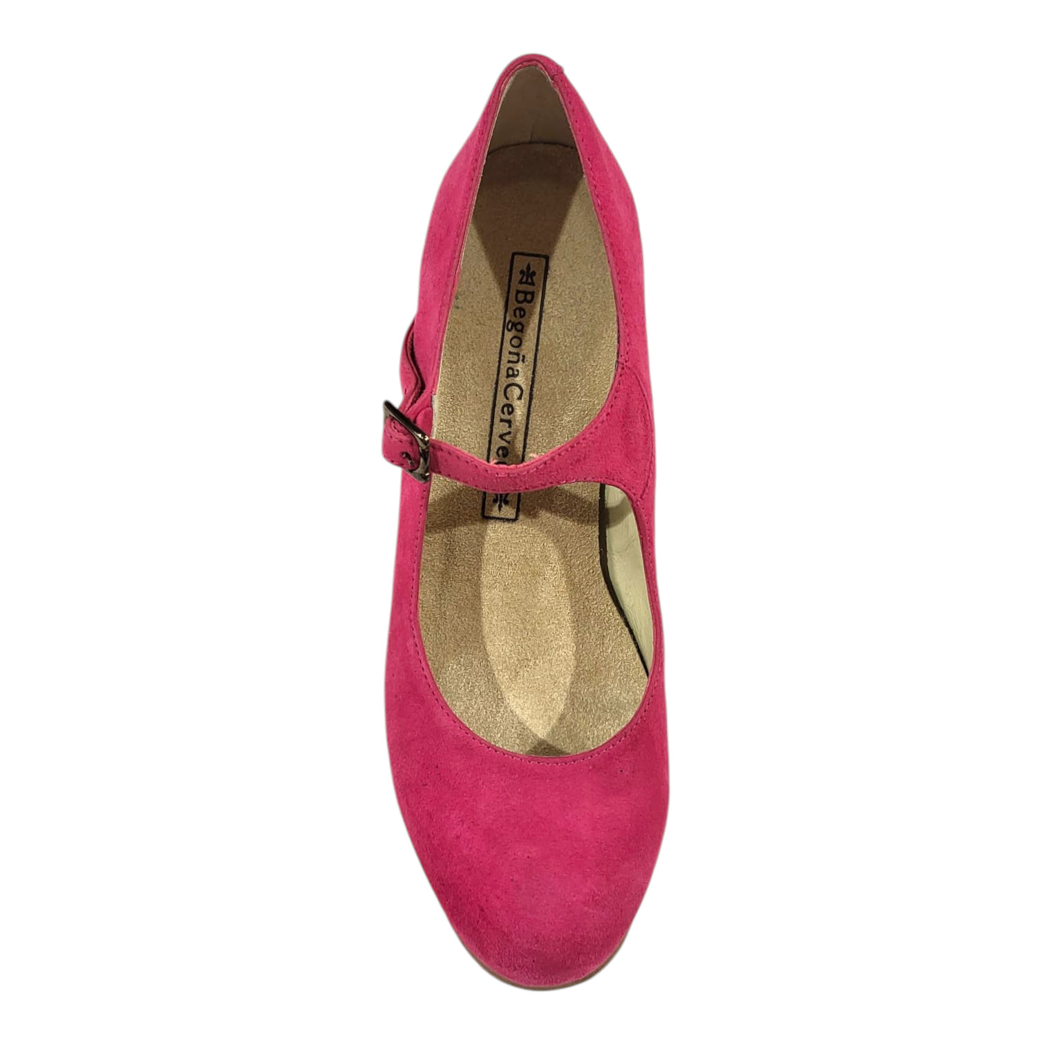 Made of first quality leather and with sole-leather to get the perfect sound. Professional shoes for flamenco dance. It is a classic and simple design. The toe is rounded. They fasten with a strap with buckle.