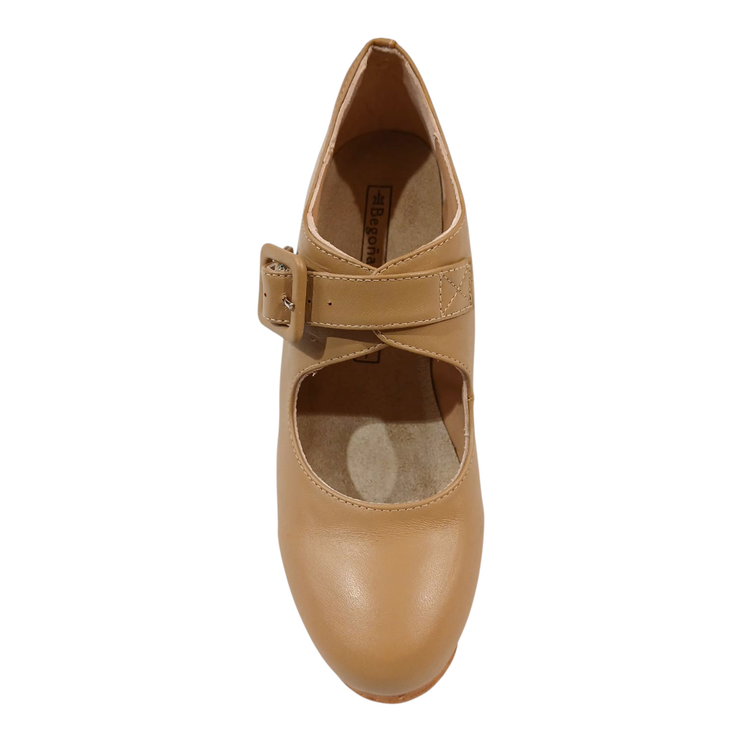 The flamenco dance shoes model Tablas is a model like the Correa one, but closed on the vamp and fastened with a big buckle.