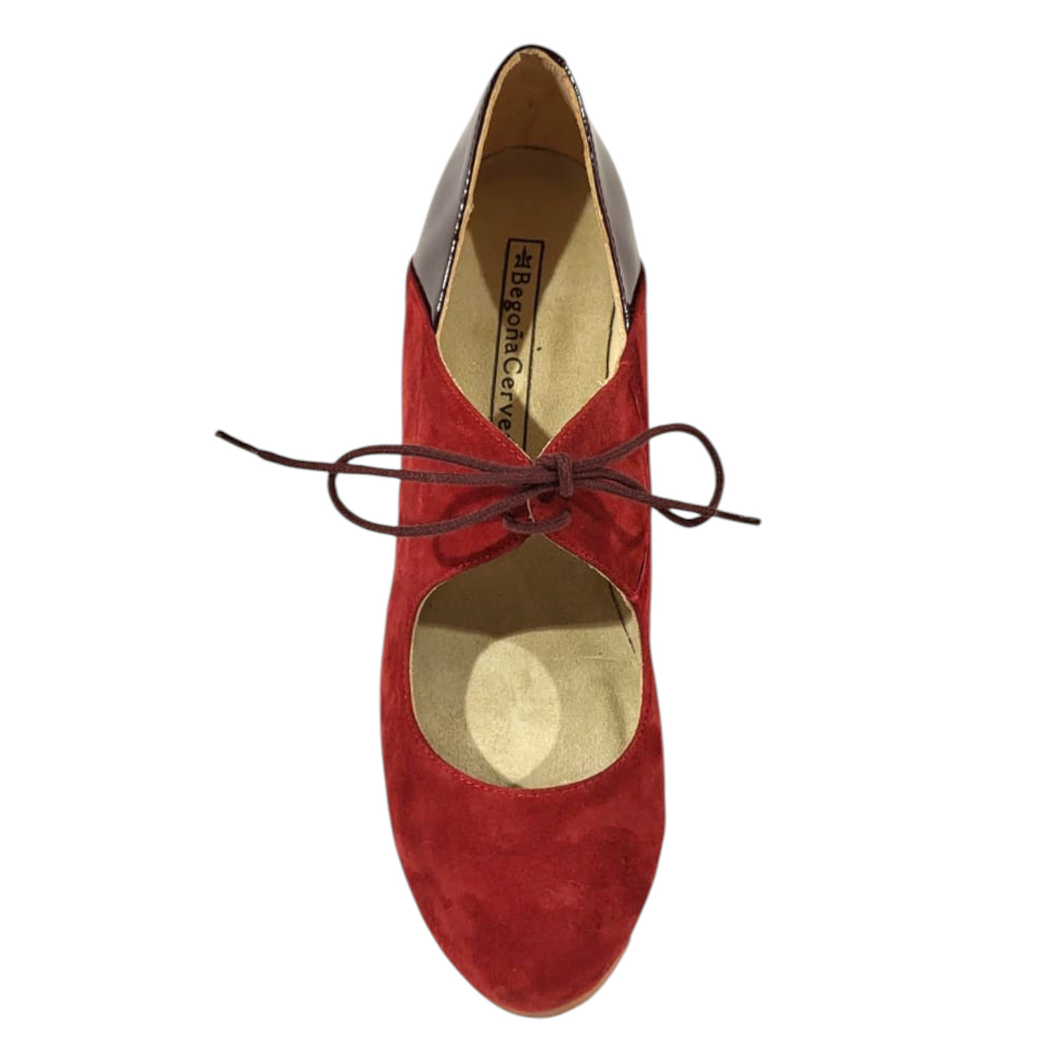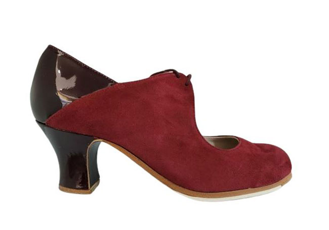 El Modelo Arty va abrochado en la parte de arriba del empeine con un cordón. Tiene planta de cuero, filis con acabado antideslizante, suela y planta de cuero cosidos a mano, clavos en puntera y tacón y forro de piel.