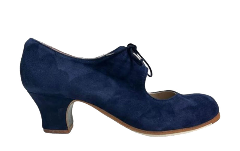 Maravilloso par de zapatos para el baile flamenco. El Modelo Cordonera está fabriado en ante, abrochado en la parte superior del empeine con un cordón. Tiene planta de cuero, filis con acabado antideslizante, suela y planta de cuero cosidos a mano, clavos en puntera y tacón y forro de piel.