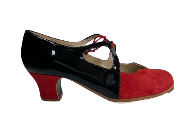 El Modelo Dulce es un zapato para baile flamenco elegante, que dentro de su sencillez tiene un diseño muy original. Tiene planta de cuero, filis con acabado antideslizante, suela y planta de cuero cosidos a mano, clavos en puntera y tacón y forro de piel.