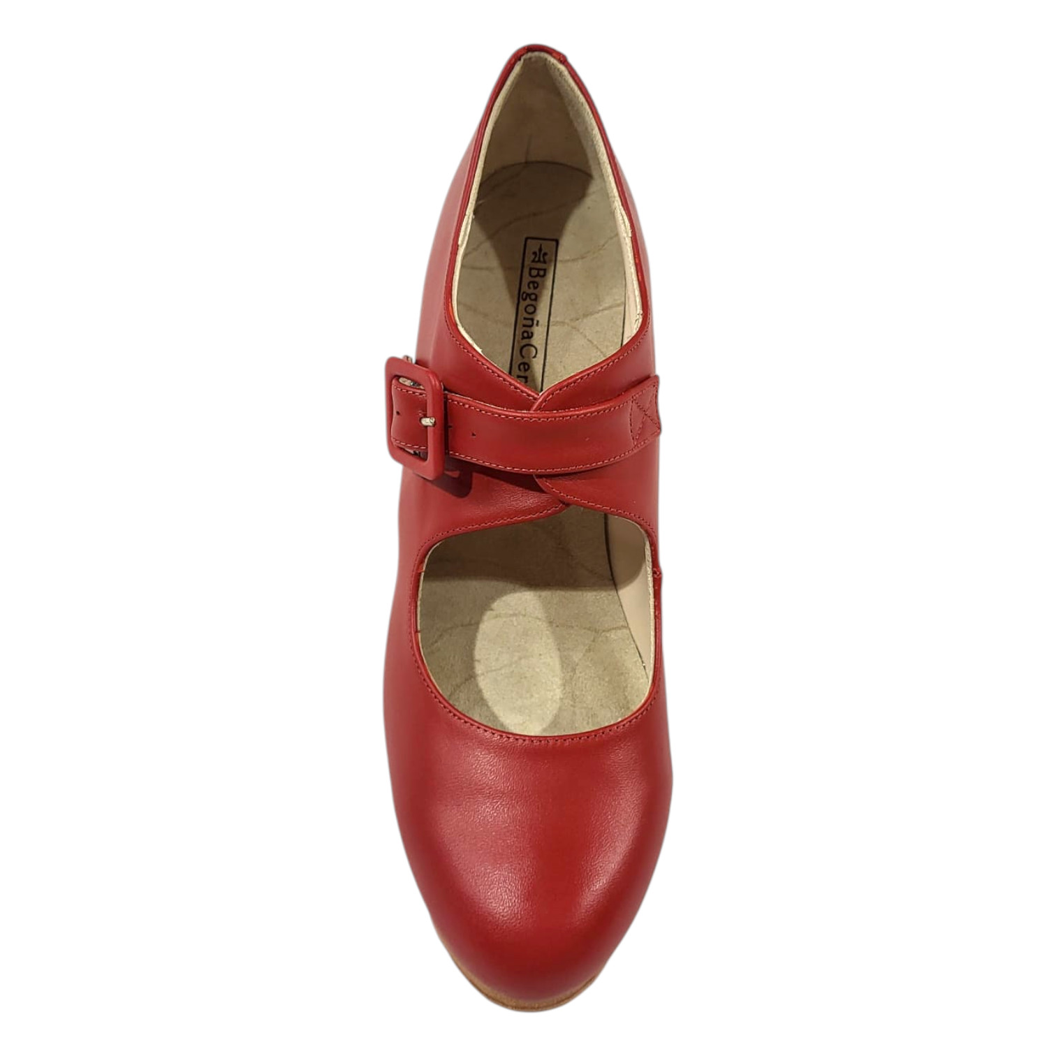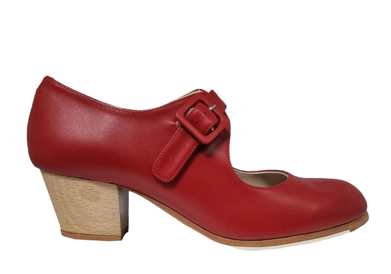 El zapato de baile flamenco Modelo Tablas es un modelo como el Correa pero cerrado en lo alto del empeine, y abrochado con una gran hebilla a un lado. Tiene planta de cuero, filis con acabado antideslizante, suela y planta de cuero cosidos a mano, clavos en puntera y tacón y forro de piel.