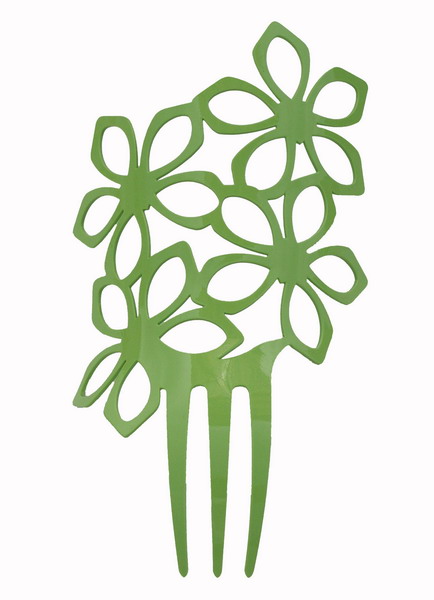 Acetate comb, hand cut, colored and then polished. It is very flexible, and should never break. Its composition gives a special shine. It is made of an expensive material which explains its retail price.