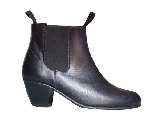 Beginners ankle-boots for kids, normal width, smooth leather, synthetic sole, without nails, rounded toe, and stretching elastane strap to make it easier to put them on.