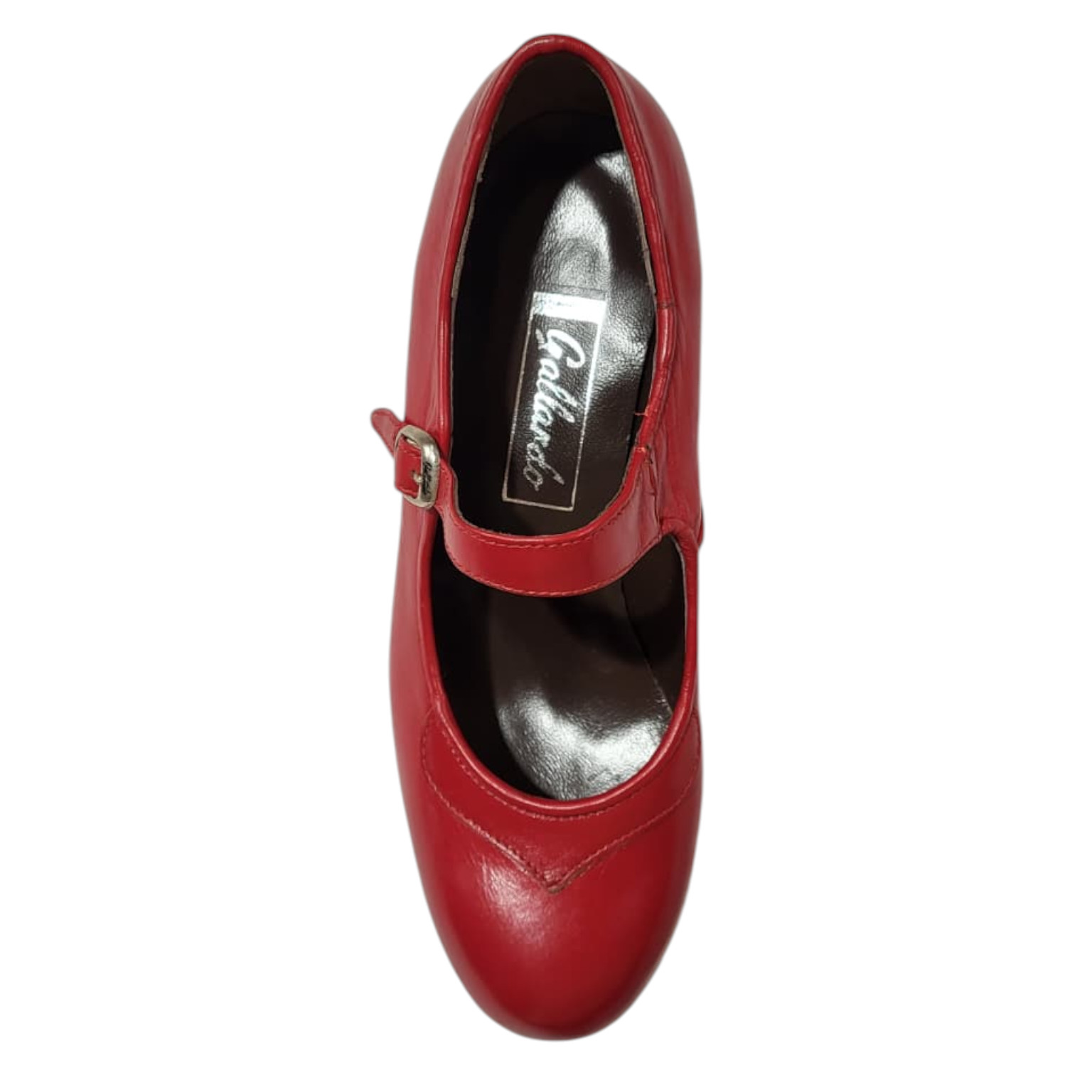 Flamenco shoe model Mercedes with strap and buckle, is made of top quality bovine leather, has non-slip edges and numerous nails on the toe and heel. It is handmade both in series A (Standard). If it is made in leather, it has a reinforcement in the form of a collar on the vamp.