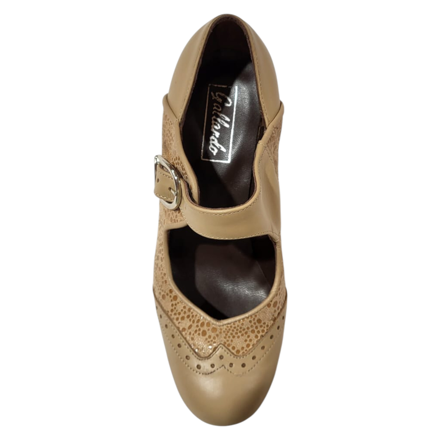 The Fatima model its Gallardo's latest design. Classic style range in flamenco shoes. This time Gallardo includes straps and a big buckle matching the front and the back part of the shoe. This model can be customized with fantasy materials enhancing the shoes. These shoes are totally handmade. On the sole and the heel, there are more than 300 nails and its finish is made with care. All this slow and hard process makes the Gallardo shoes unique.
