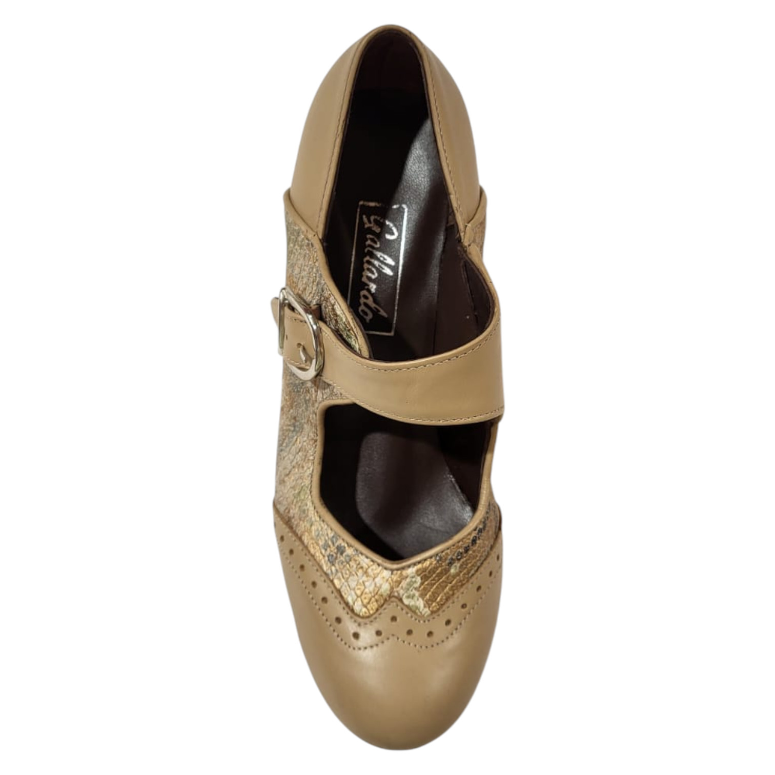 Gallardo ha realizado un nuevo diseño, el modelo Fátima. Zapato de línea clásica pero con correa y hebilla de un tamaño superior a lo normal y combinación en la puntera y trasera. Este modelo se puede combinar con materiales de fantasía para darle más vistosidad. Fabricado en piel de bovino de primera calidad, filis antideslizantes y numerosos clavos en punta y tacón. Se fabrica en serie standard(a) y en serie Profesional(p).
