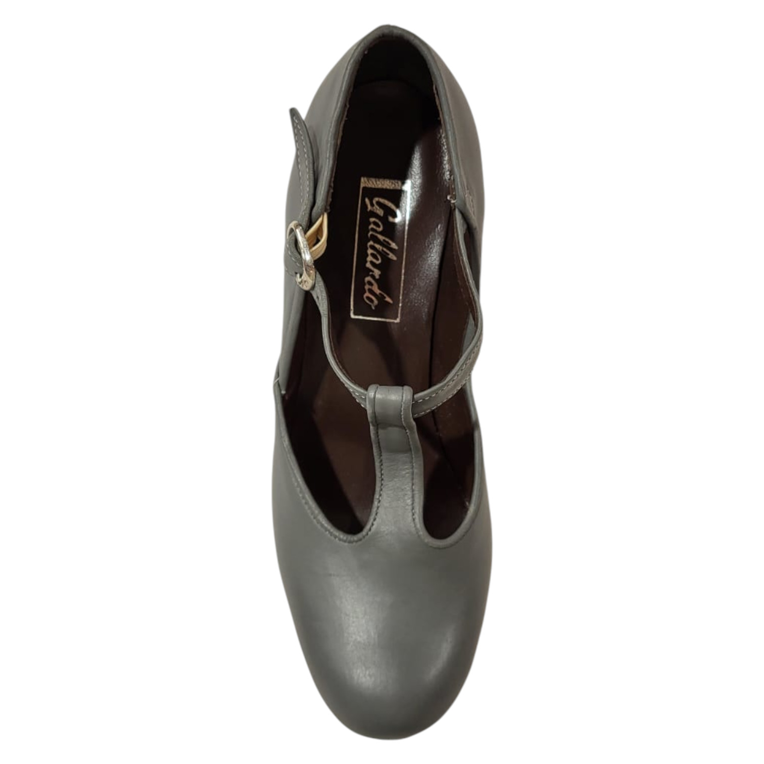 Zapato de flamenco Gallardo, de línea sandalia, un poco cerrado a los costados.En la foto C-715 y tacón de 5cm.