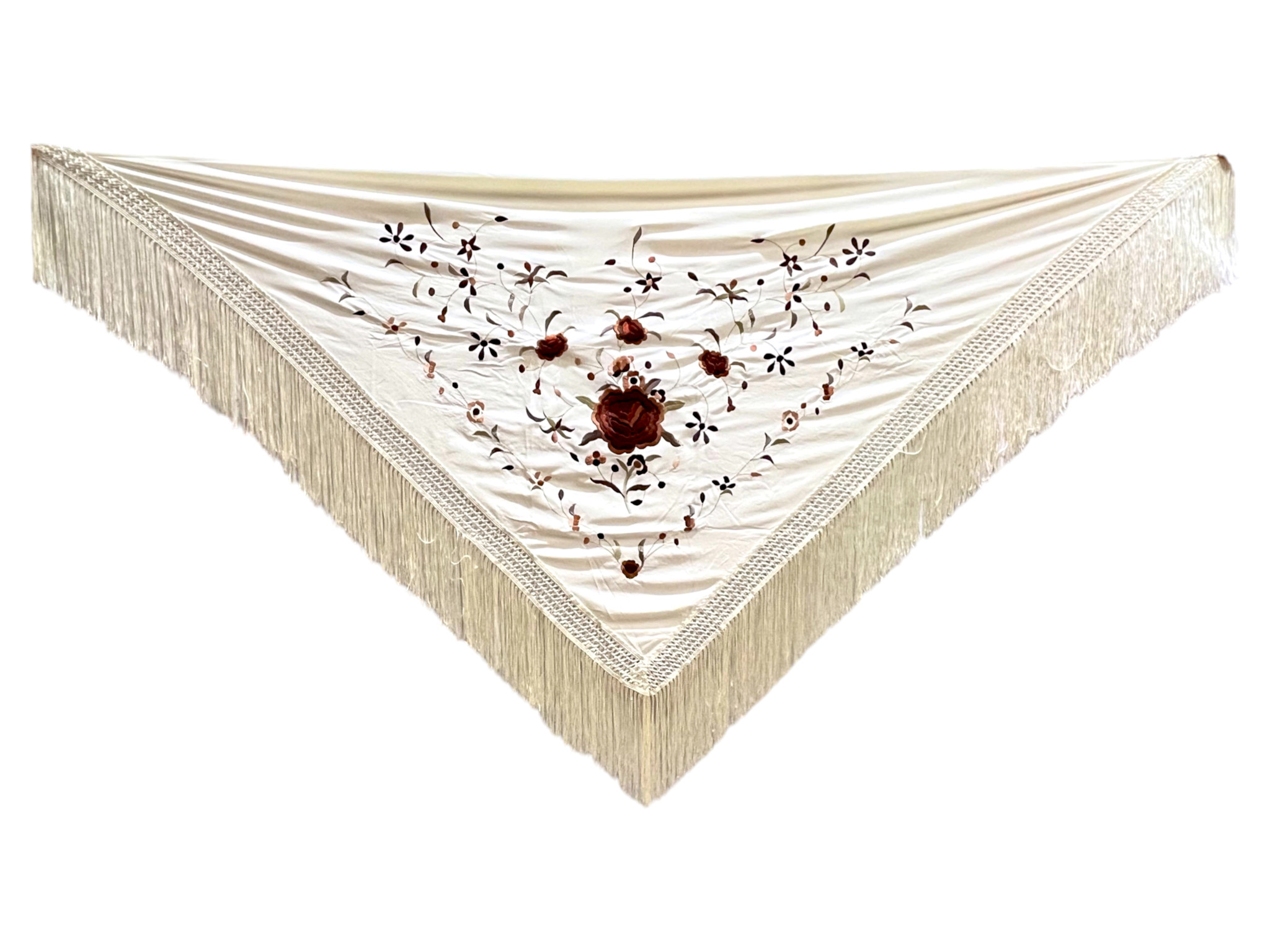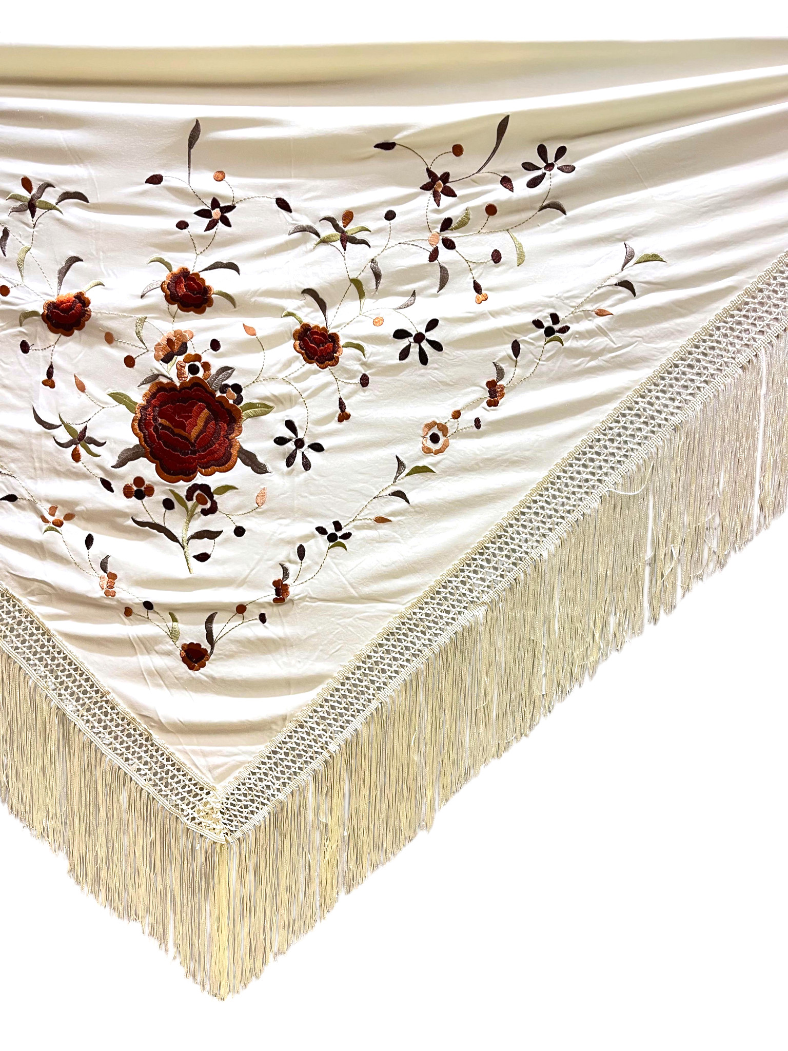 Mantoncillo bordado económico - marfil bordado en tonos marrones