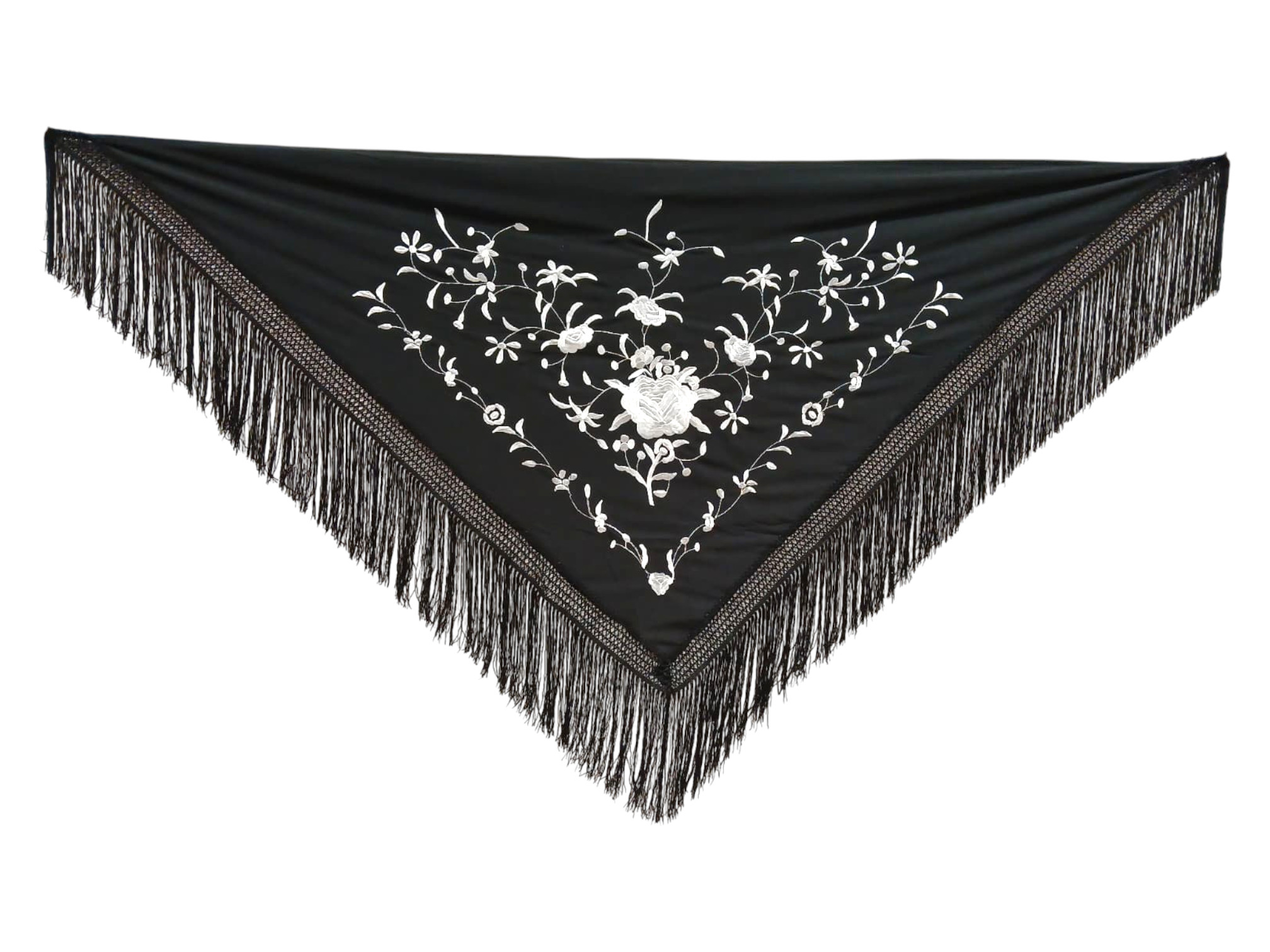 Mantoncillo bordado económico - negro bordado en marfil