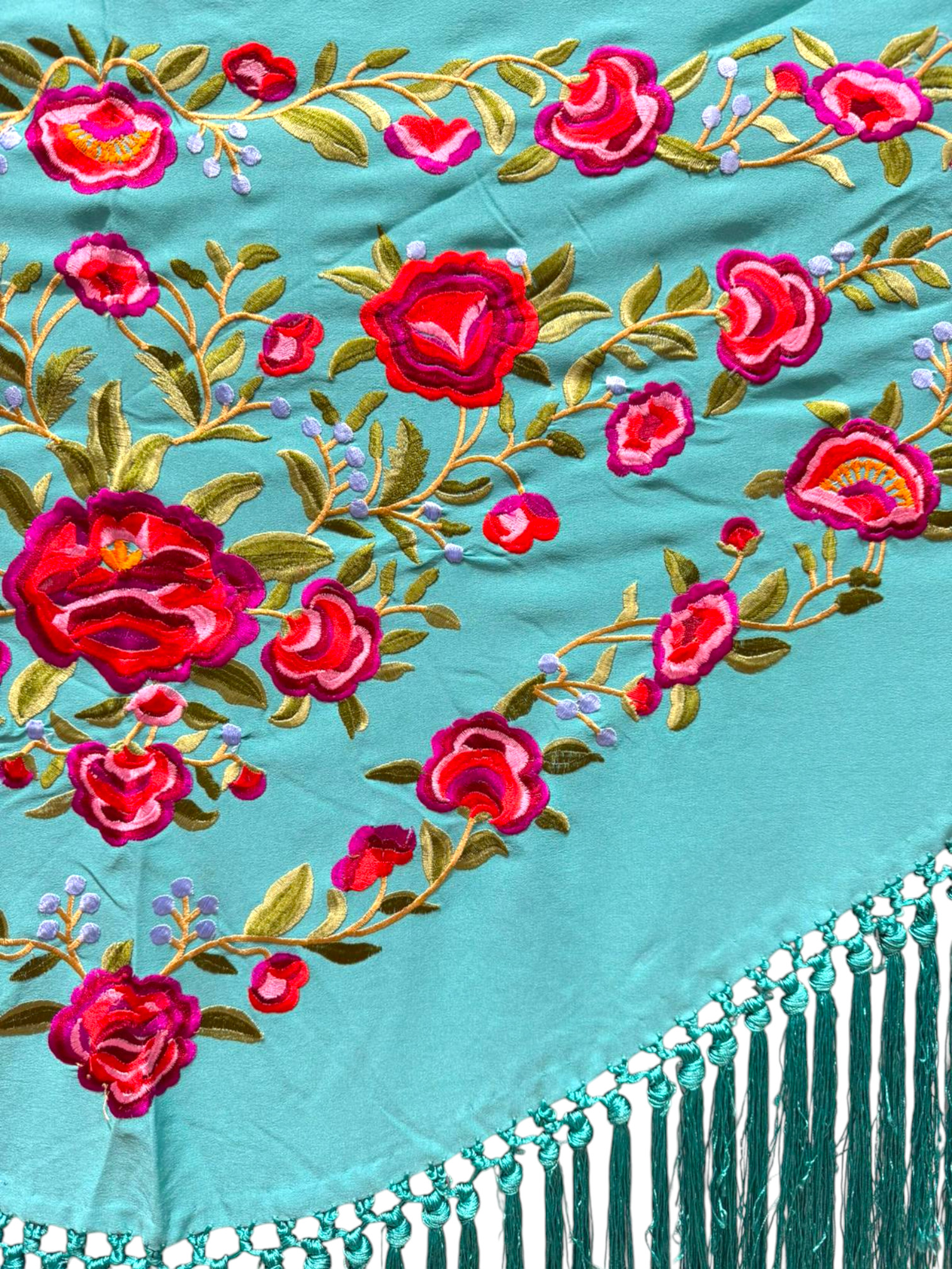 Mantoncillo bordado modelo Peonia Aguamarina