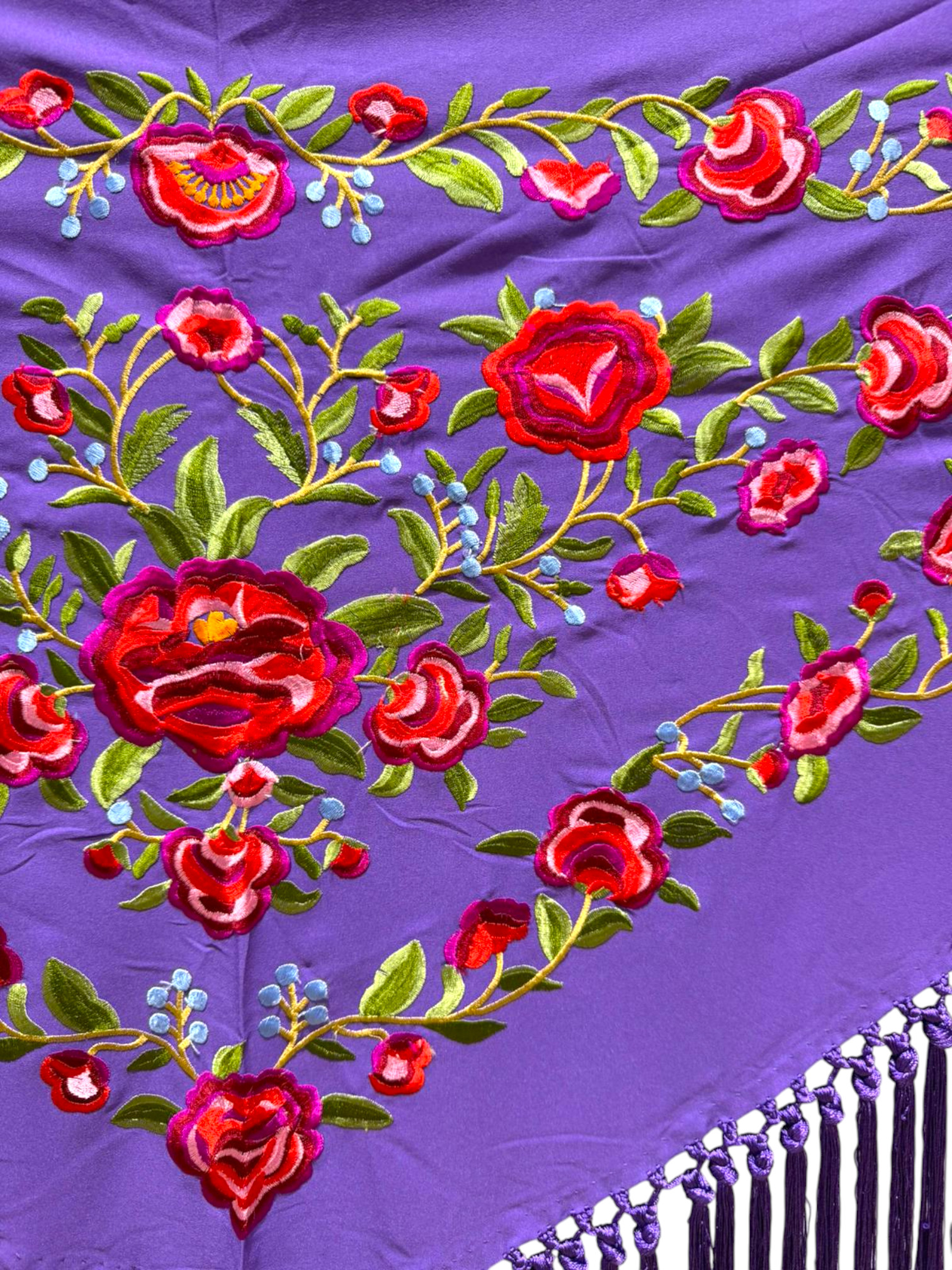Mantoncillo bordado modelo Peonia Morado
