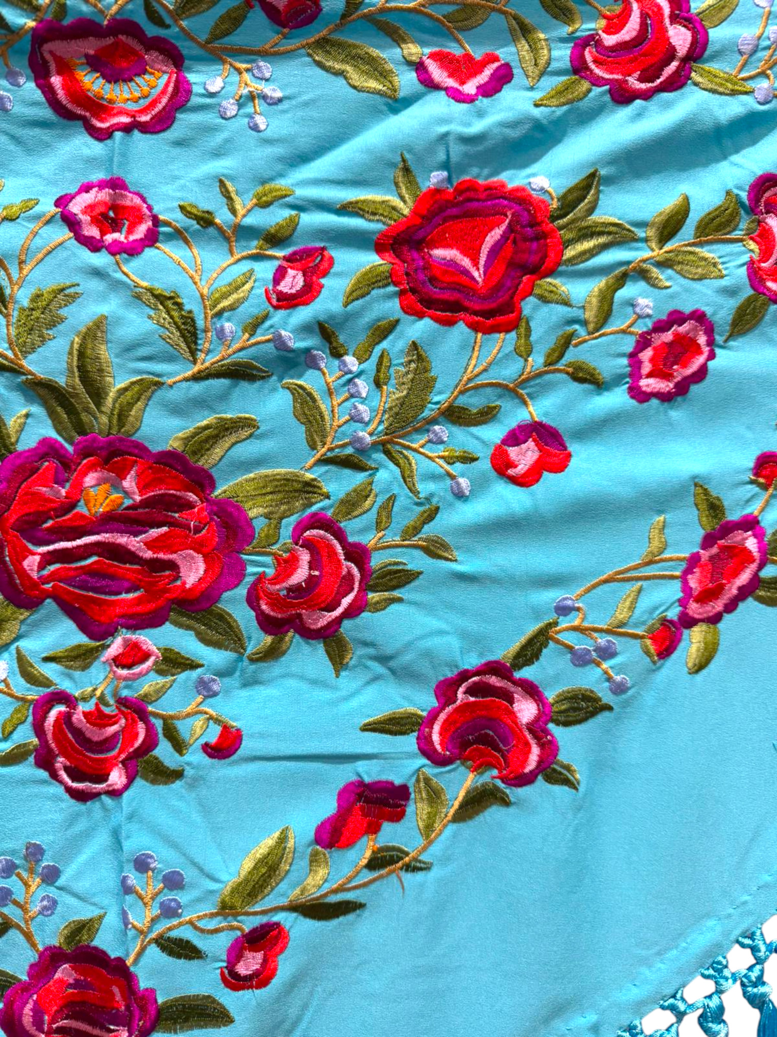 Mantoncillo bordado modelo Peonia Turquesa
