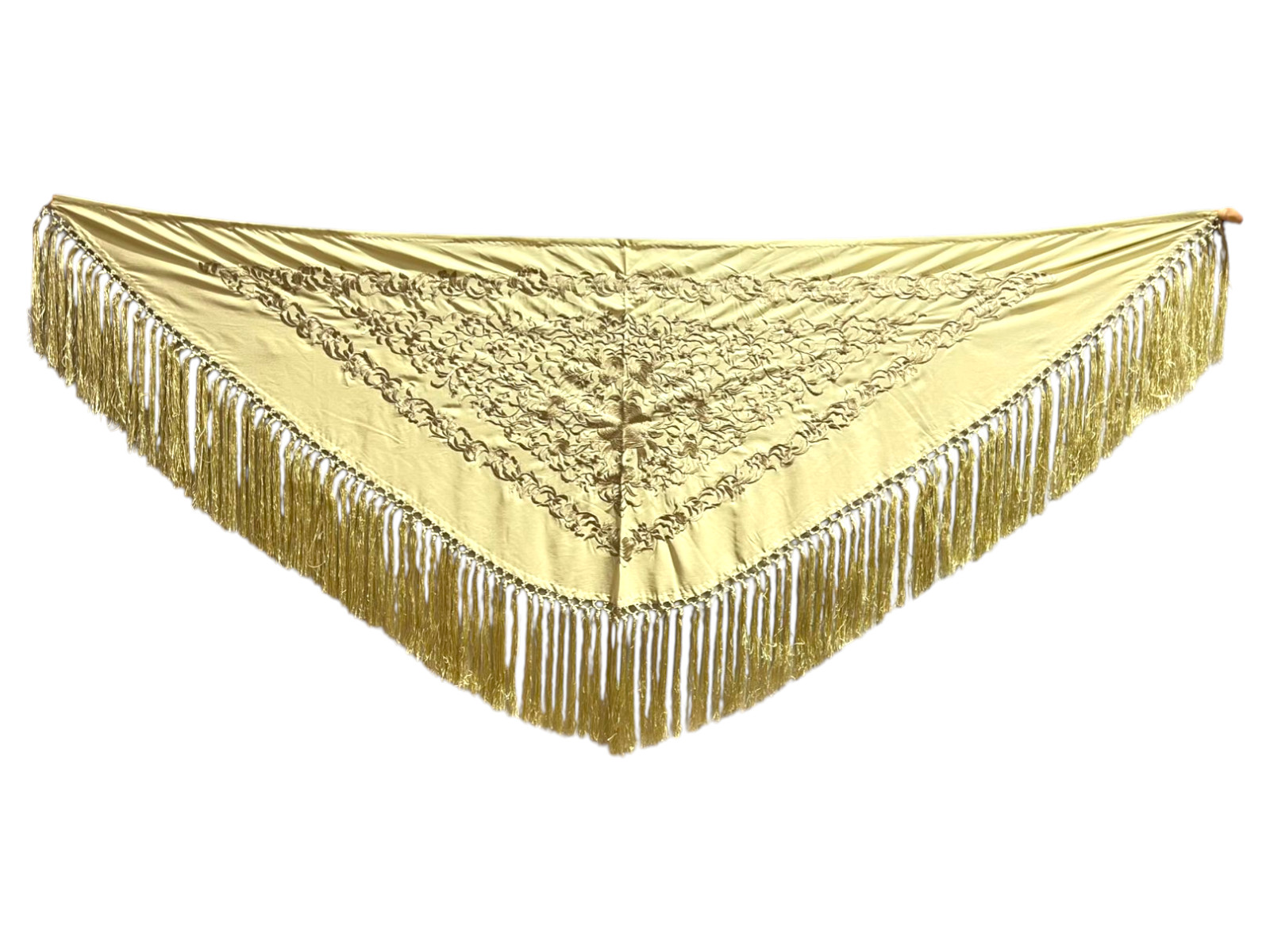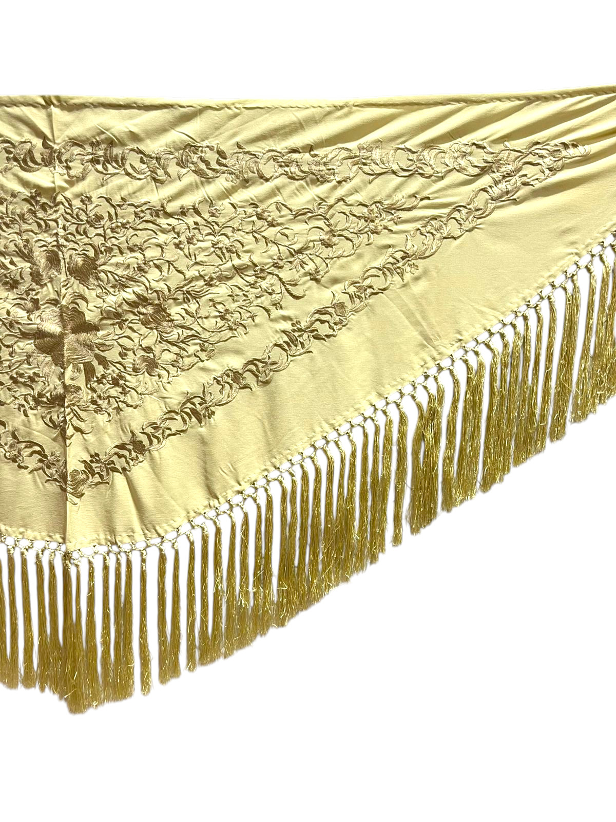 Está rematado con flecado de seda anudado a mano, que aporta movimiento, caída y un acabado tradicional de gran calidad. Fabricado íntegramente en España, es un mantoncillo económico que mantiene la esencia del complemento flamenco clásico.