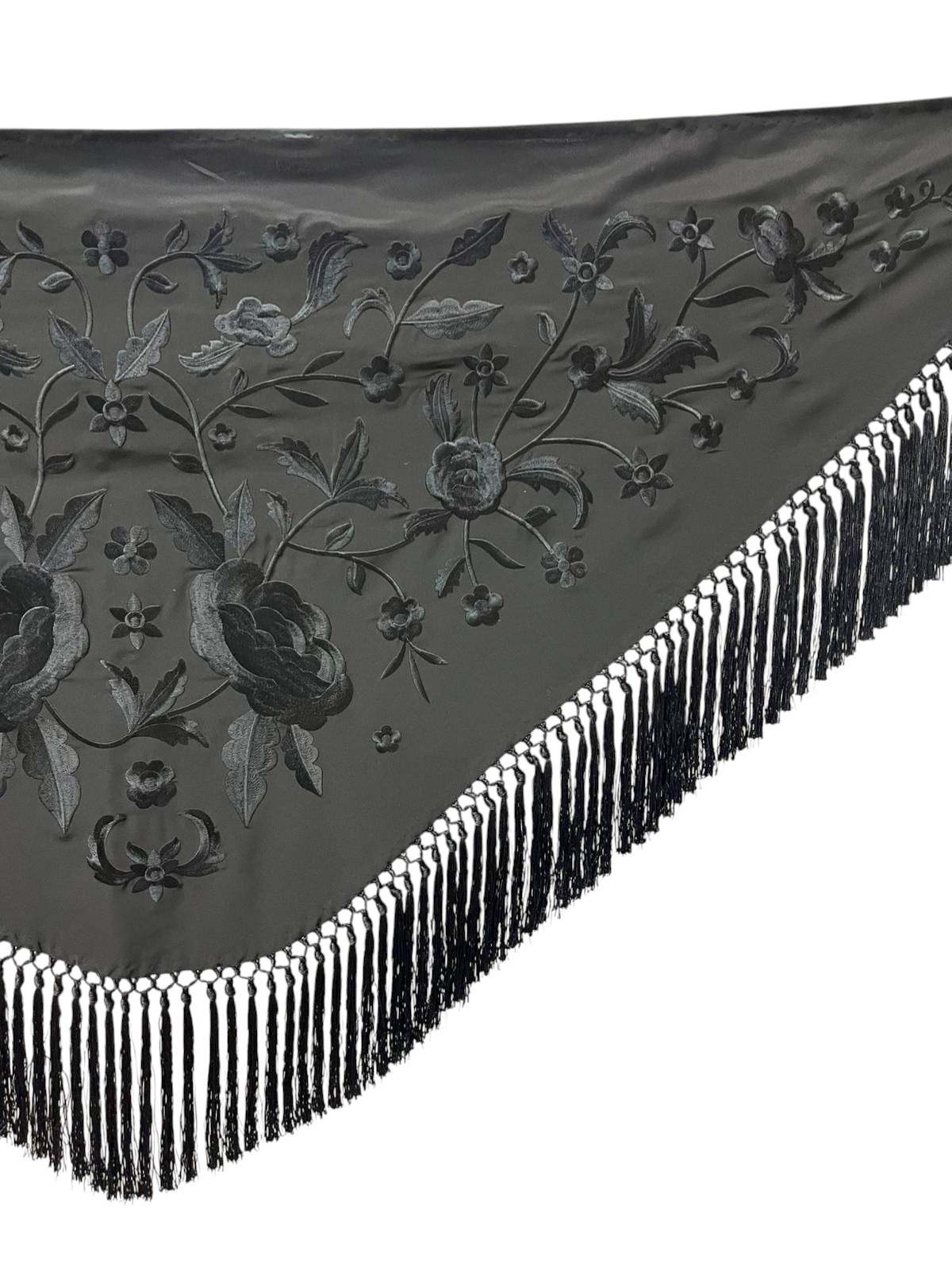 Mantoncillo de flamenca bordado con flecado a mano en seda