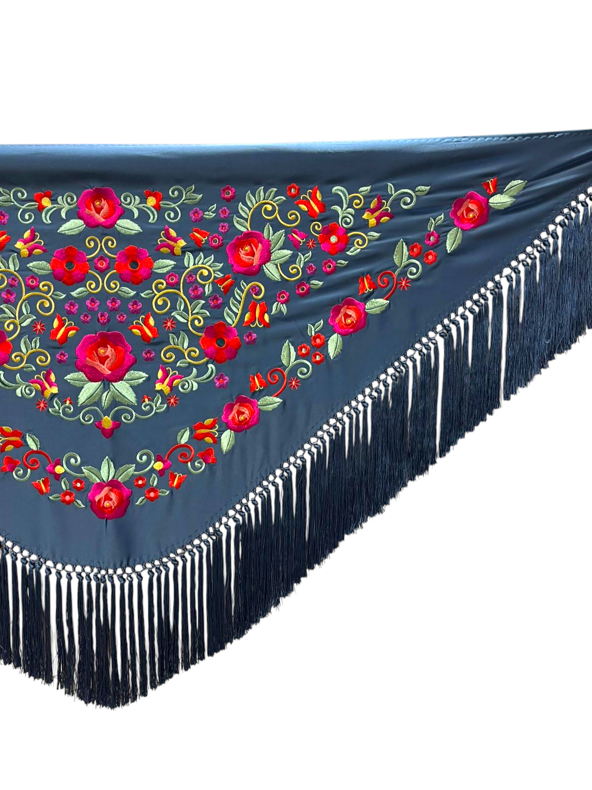 Cada modelo está bordado a máquina con diseños cuidadosamente trabajados que destacan por sus motivos florales, detalles clásicos y colores vibrantes. Disponemos de una enorme variedad de combinaciones de colores, desde los tonos más tradicionales hasta opciones modernas que combinan con cualquier traje o conjunto. Gracias a esta variedad, siempre encontrarás el mantoncillo perfecto para complementar tu traje de flamenca, vestido de fiesta o conjunto de invitada.