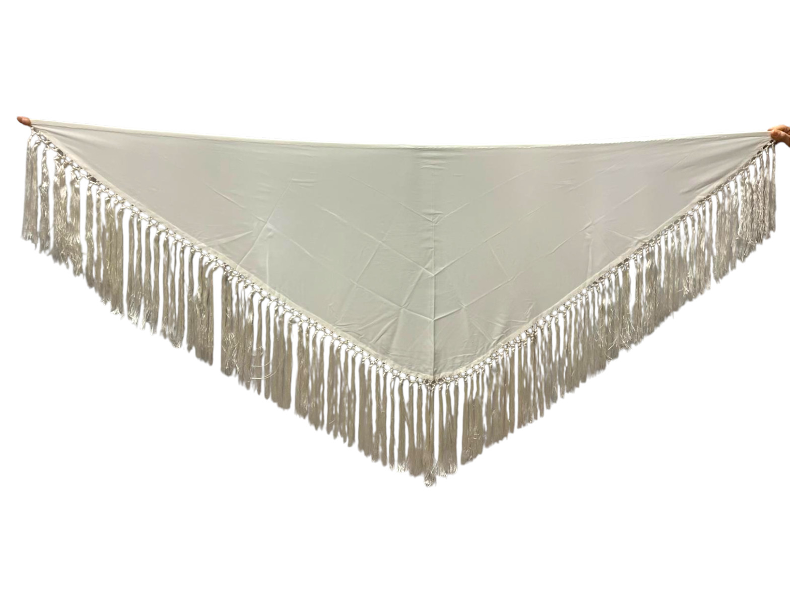 Mantoncillo liso de crespón y fleco de seda Marfil