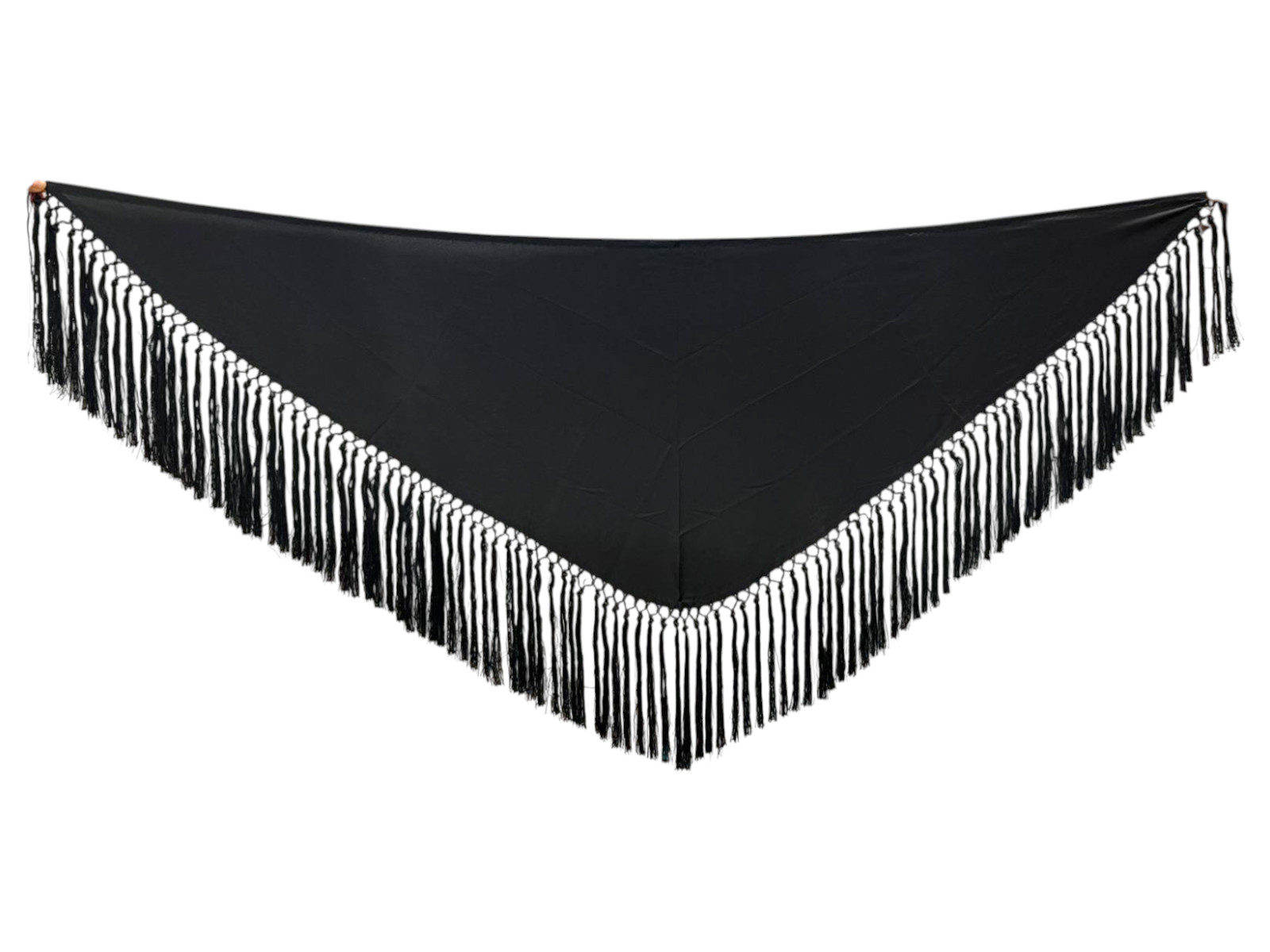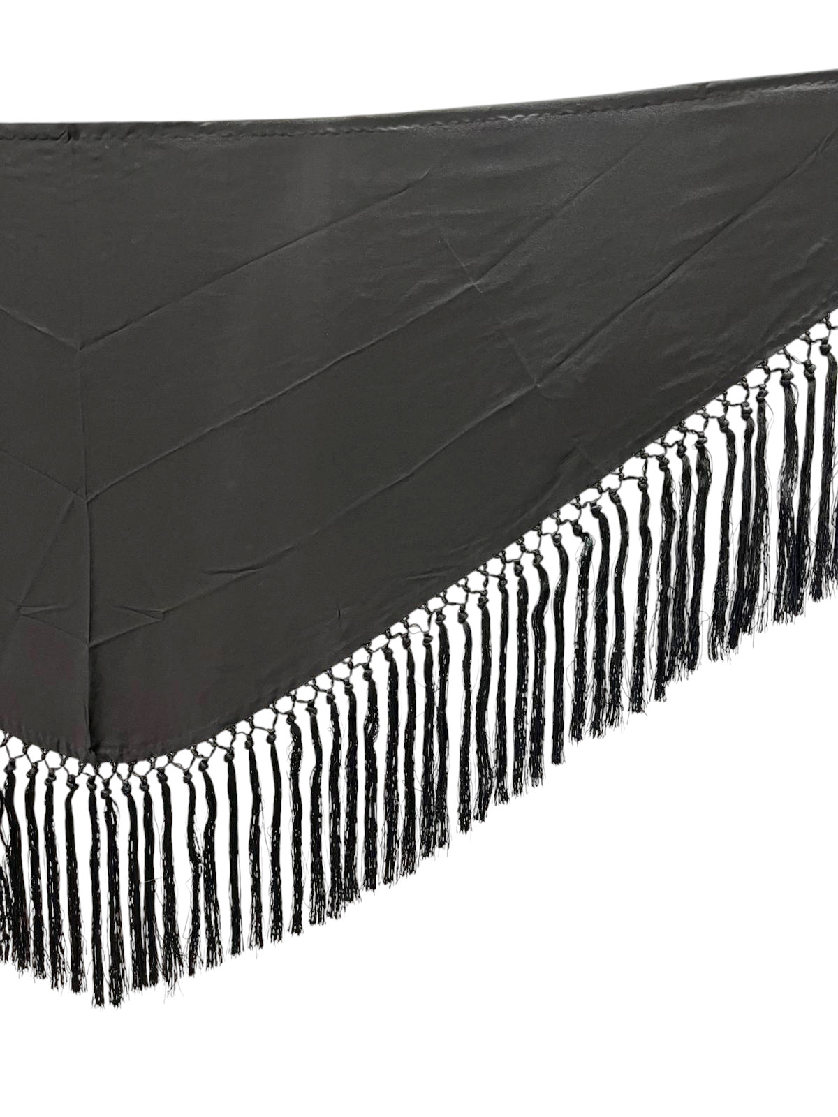 Mantoncillo liso de crespón y fleco de seda Negro