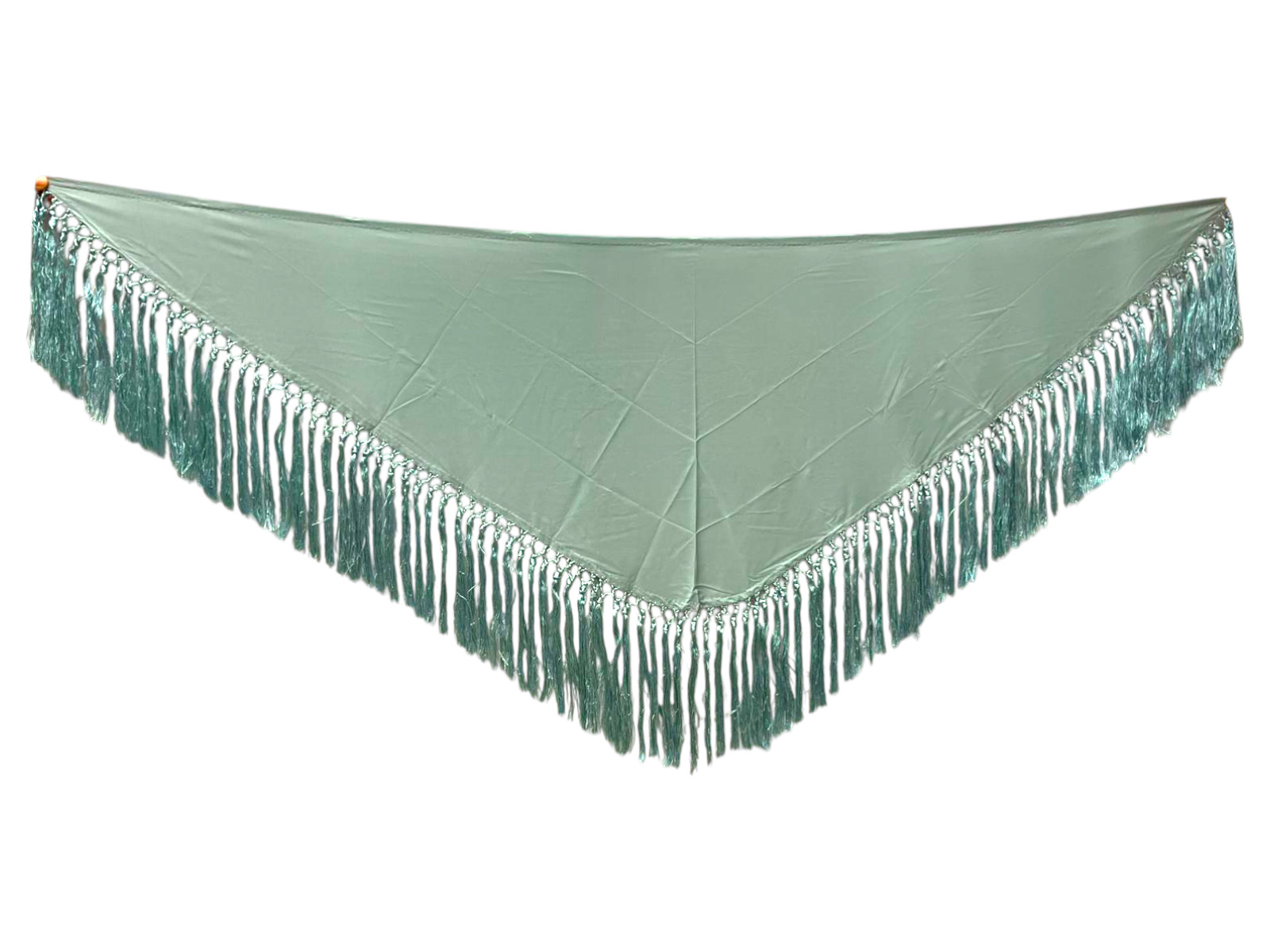 Mantoncillo liso de crespón y fleco de seda Verde Jabonoso