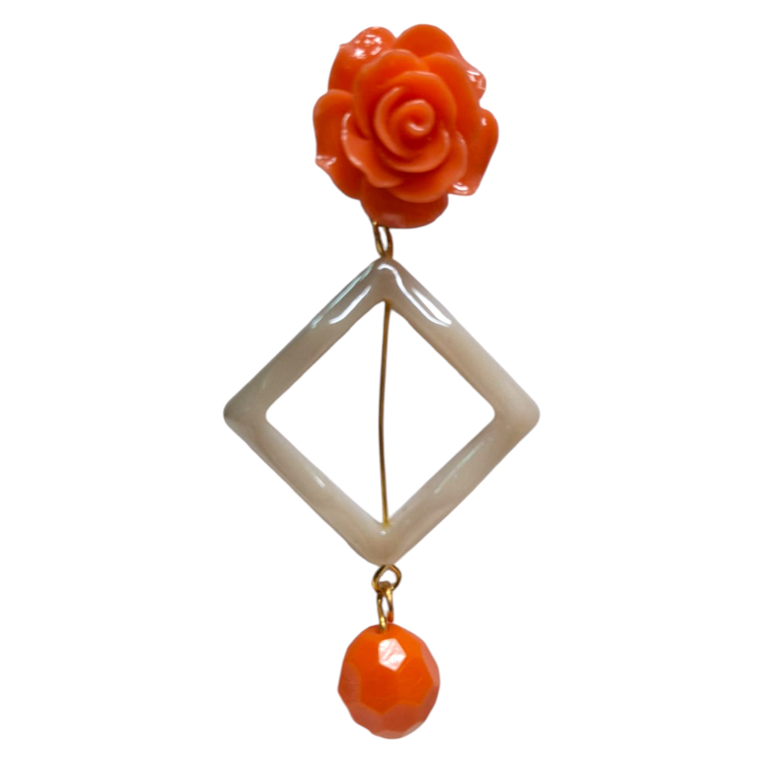 Pendientes de flamenca artesanales hechos en Sevilla, con diseño en forma de rombo, bola decorativa y cierre con una rosa. El complemento perfecto para tu traje de flamenca en feria, romería o cualquier evento flamenco. Destacan por su estilo tradicional andaluz y acabado hecho a mano.