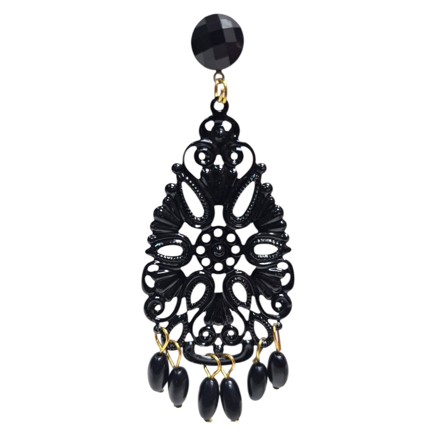 Pendientes flamencos con diseño ovalado de filigrana y bolitas, perfectos para quienes buscan un complemento tradicional con un toque sofisticado. Ideales para feria, baile o eventos especiales. Hechos en Sevilla (España), con estilo andaluz.