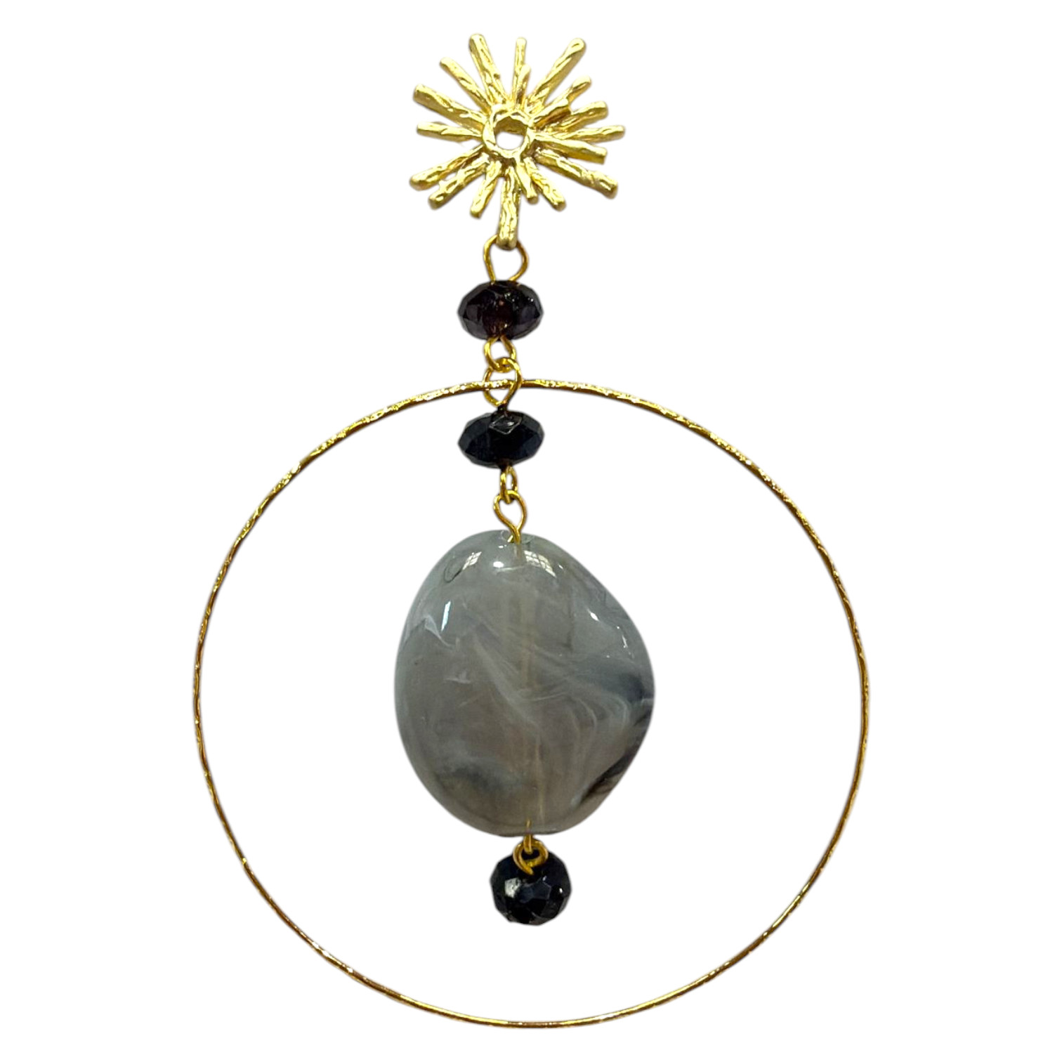 Pendientes de flamenca gris con aro dorado estilo minimalista