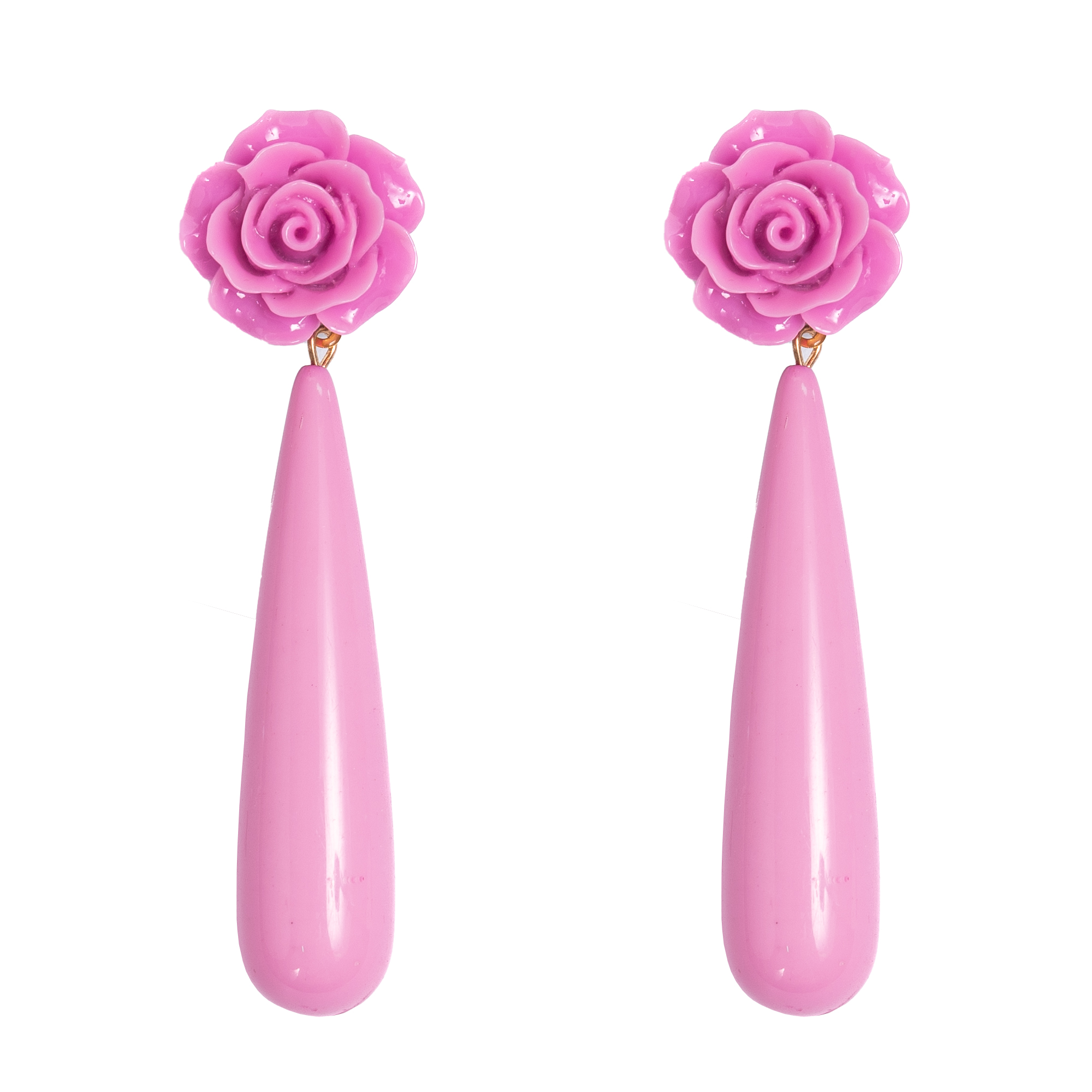 Evoca la magia de una noche flamenca con estos pendientes, que presentan una lágrima en un malva vibrante, lleno de misterio y encanto. El clip, adornado con una rosa en el mismo tono, crea un conjunto armonioso y apasionado, perfecto para destacar en el tablao o en la feria.