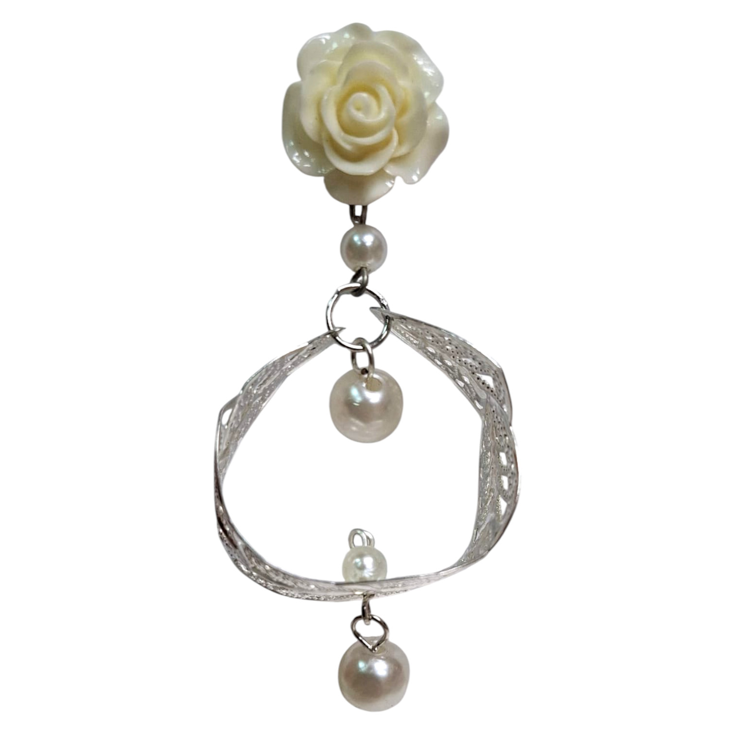 Pendientes de flamenca artesanales en blanco y plateado, hechos en Sevilla, ideales para completar tu traje de flamenca o de baile. Su diseño elegante con filigrana aporta movimiento y sofisticación, perfectos para Feria de Abril, Rocío y eventos flamencos.