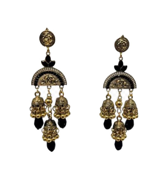 Con un largo aproximado de 10cm, este diseño fabricado en color dorado con aleación de metales y cristales, bolas doradas y lágrimas negras cuidadosamente integradas. Son pendientes muy ligeros, pensados para ofrecer comodidad sin renunciar a un estilo llamativo.