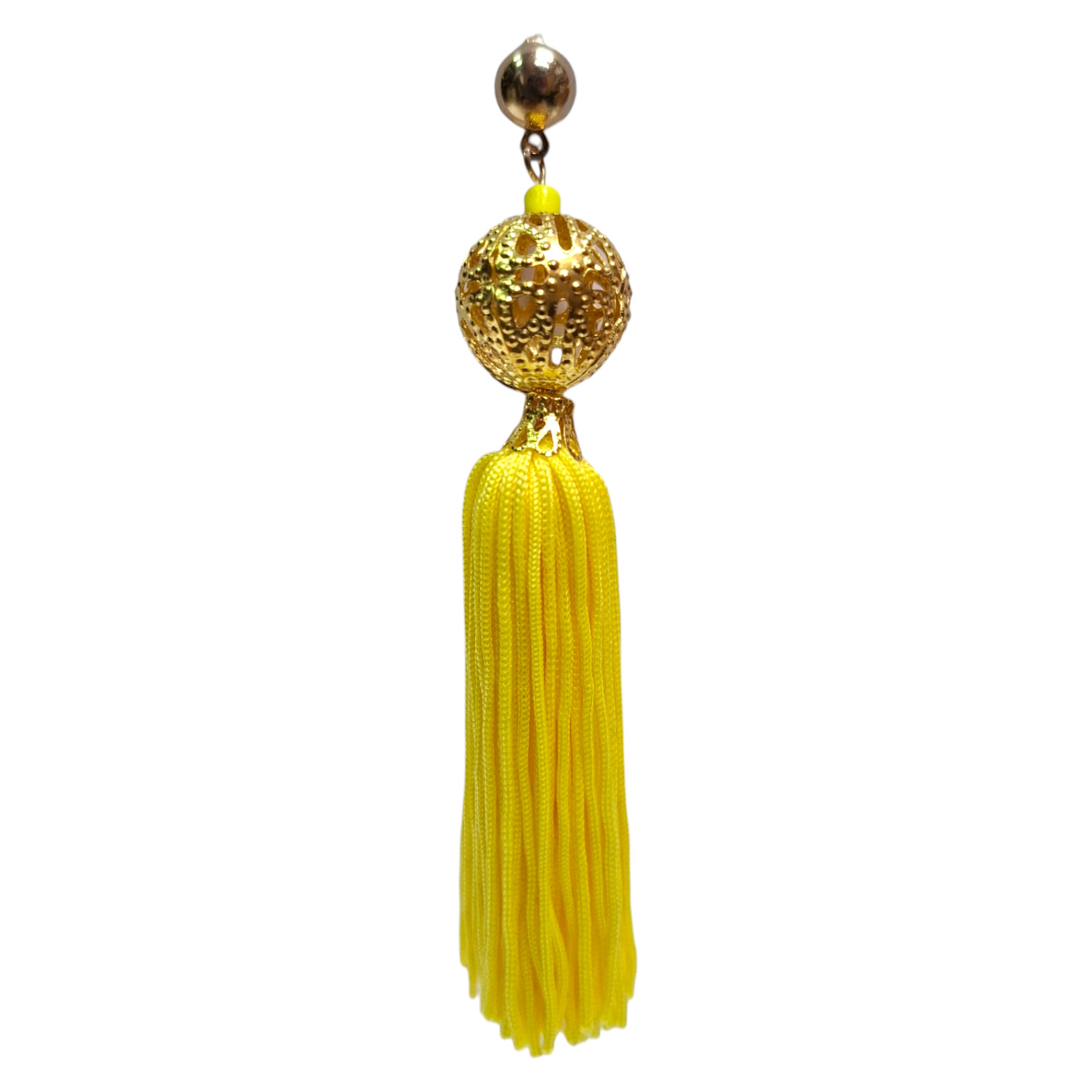 Pendientes Flamencos Elegantes de Flecos con Decorado con Bola Dorada. Amarillo