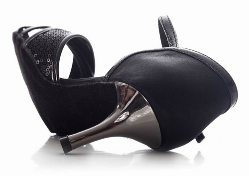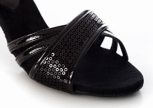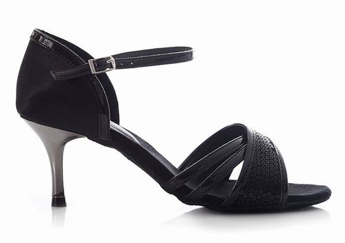 Original dance shoes decorated with strips and sequins. Dance shoes perfect to dance salsa and latin dances. They are very comfortable with their padded insole and fastening buckle on the ankle.
