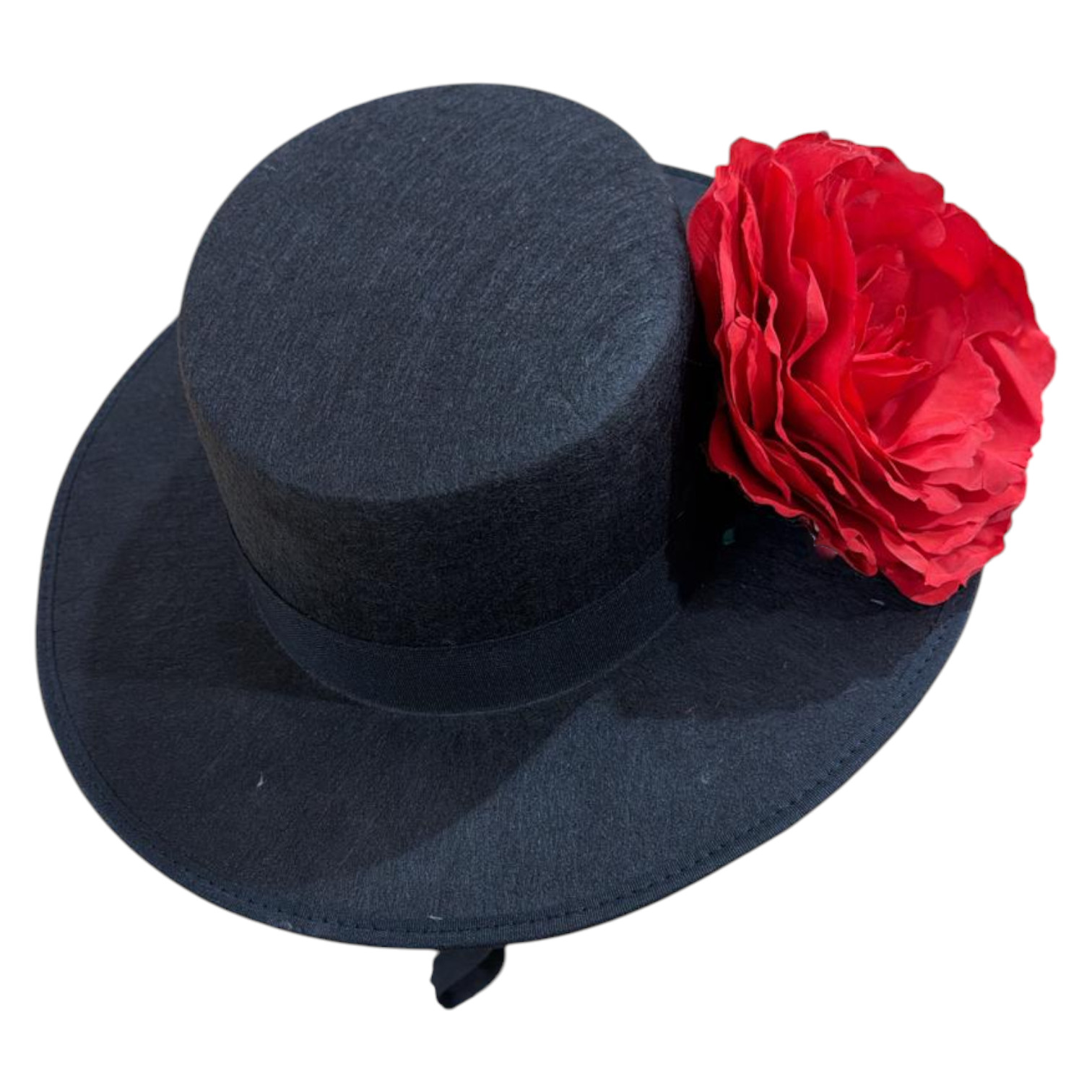 Fabricado en fieltro de alta calidad, su estructura mantiene la forma perfecta del tradicional sombrero cordobés, mientras que el ramillete floral aporta un toque artístico, femenino y lleno de personalidad, ideal para ferias, romerías, espectáculos flamencos o looks de inspiración andaluza contemporánea.