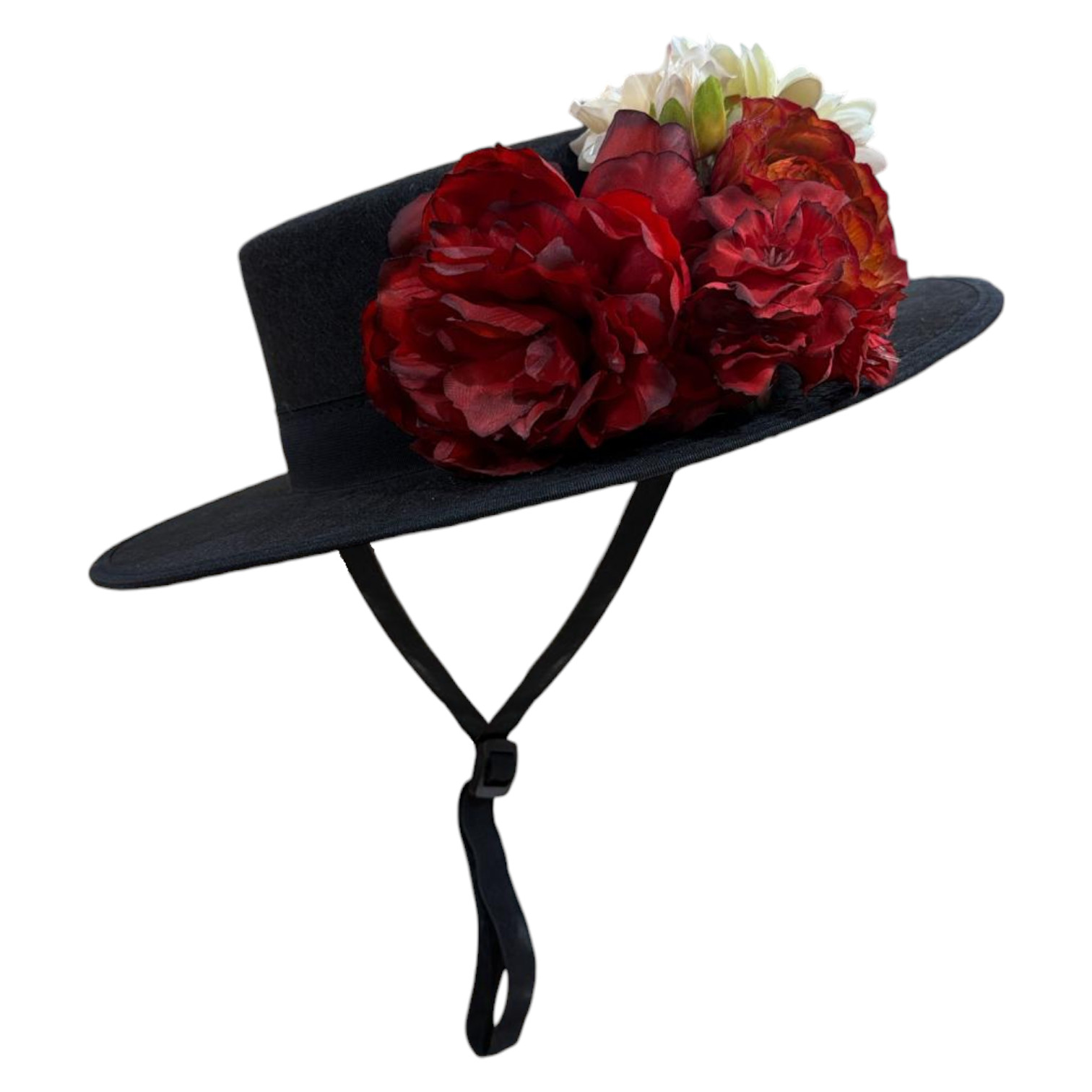 Este sombrero cordobés decorado con ramillete de flores es una reinterpretación sofisticada y única del clásico sombrero andaluz. Cada pieza está montada y decorada a mano, lo que lo convierte en un accesorio exclusivo, pensado para quienes desean destacar con un estilo auténtico y elegante, lejos del típico sombrero cordobés en liso.