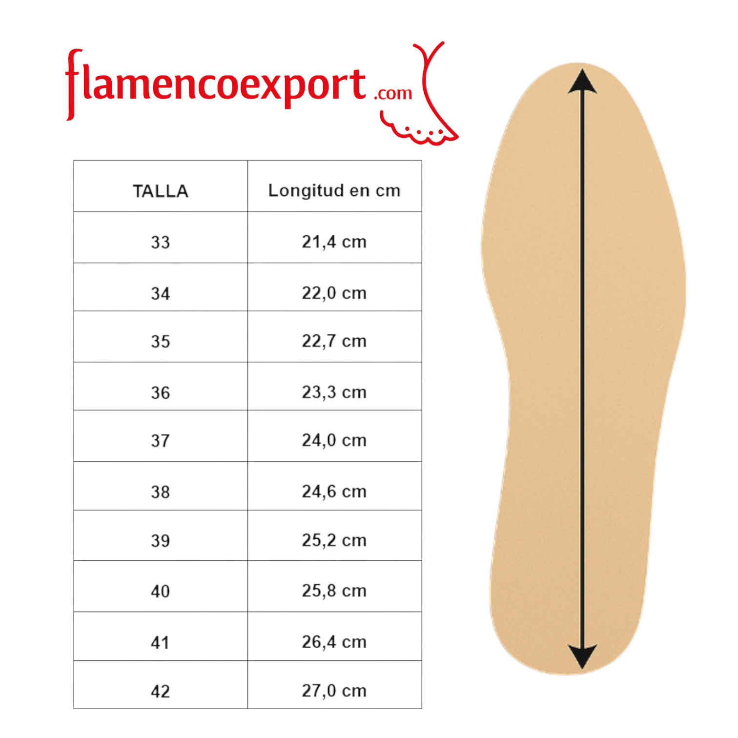 Flamenco dance shoes for semi-professional users. Totally made of leather, with sewn leather sole, reinforced grip in the instep, stretchable strip as buckle for a perfect grip, inner leather lining, solid wood heel, nails on heel and toe and reinforced half inside sole.