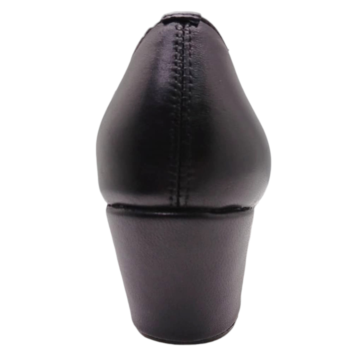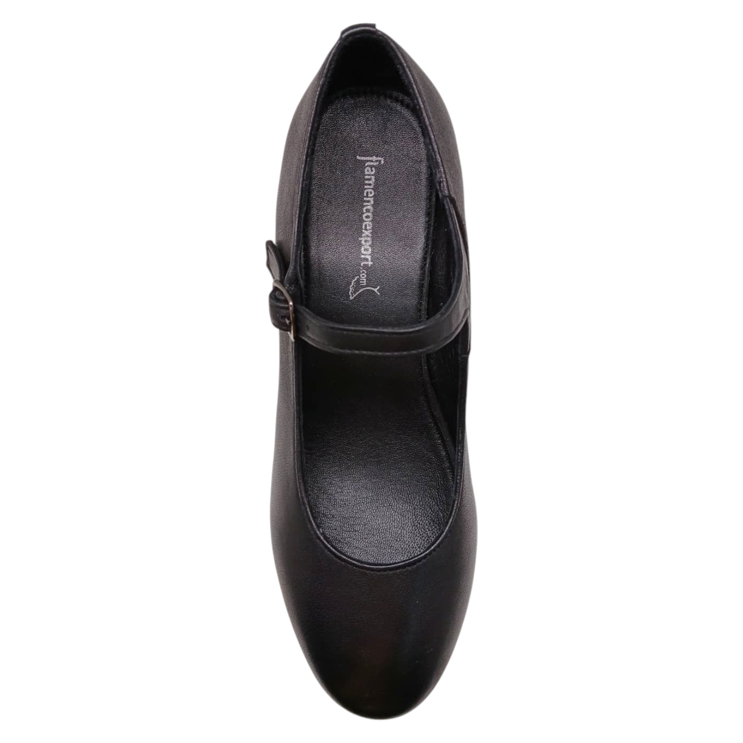 Flamenco Dance Shoes in Black Leather with Strap and Cuban Heel