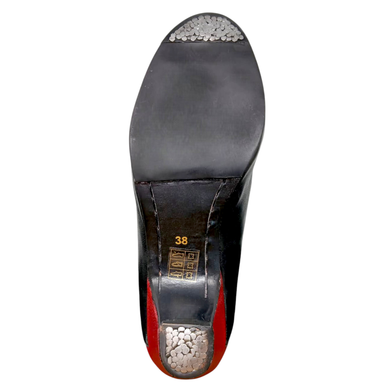 Semiprofessional Flamenco Shoes in Black and Red Leather. Mod. Arte