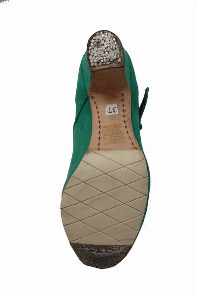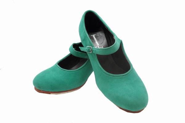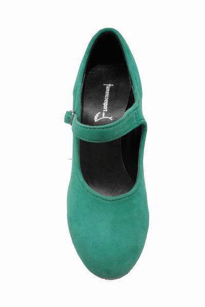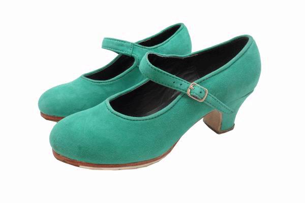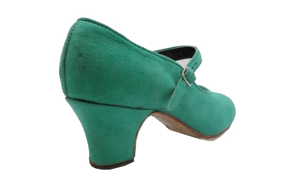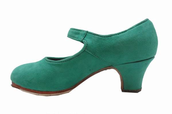 Chaussures de Flamenco semi-professionnelles modèle Mercedes en Daim Vert. FlamencoExport